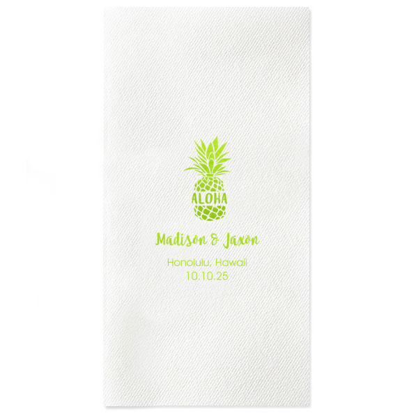 Zoom Show guides Loading product Aloha Pineapple Napkin Diamond Cocktail Napkin Design ID: 3276 Click on swatch to see options Choose Your Napkin Color Active Color 3 ply 3 ply Top quality 3 ply. Dyed tissue. Sand Black Slate Platinum Platinum Pin Dot Dove Gray Dove Gray Borderless White White Borderless White Pin Dot White Scallop Ivory Ivory Borderless Mimosa Lemon Pin Dot Kiwi Kiwi Pin Dot Leaf Pin Dot Spruce Pin Dot Olive Pin Dot Light Navy Dark Turquoise Pin Dot Turquoise Powder Blue Pin Dot Lavender Lavender Pin Dot Purple Merlot Pin Dot Fuchsia Candy Pink Antique Pink Pin Dot Ballet Pink Ballet Pink Borderless Convertible Red Light Coral Merlot Out Until: 2025-11-29 Tangerine Out Until: 2025-11-29 Linen Like* - Premium Product Linen Like* - Premium Product Absorbent. Dyed tissue. Airlaid. Premium pricing applies. Pebble Kraft Metallic Copper Ash Grey Black Charcoal Stone Gray Metallic Silver Fog White Ivory Cream Buttercream Metallic Gold Lemon Moss Green Olive Green Hunter Green Pastel Green Lime Eucalyptus Dark Turquoise Bright Sky Powder Blue Navy Lavender Berry Merlot Magenta Pastel Pink Pink Lipstick Red Terracotta Peach Mango Brown Out Until: 2025-11-21 Plum Out Until: 2025-11-13 Crosshatch* - Premium Product Crosshatch* - Premium Product Absorbent. Printed tissue. Airlaid. Premium pricing applies. Crosshatch Black Crosshatch Gray Crosshatch Stone Crosshatch Turquoise Crosshatch Violet Crosshatch Fuchsia Crosshatch Lipstick Red Crosshatch Key Lime Out Until: 2025-11-26 Crosshatch Green Out Until: 2025-11-29 Crosshatch Navy Out Until: 2025-11-24 Woven* - Premium Product Woven* - Premium Product Basketweave texture. Single-sided color. Premium pricing applies. Woven Sand Woven Copper Woven Black Woven Slate Woven Silver Woven Stone Woven Vanilla Woven White Woven Gold Woven Sage Woven Spruce Woven Powder Blue Woven Navy Woven Mauve Woven Convertible Red Woven Tumeric Patterned* - Premium Product Patterned* - Premium Product Exclusive FYP patterns. Single-sided color. Pindot embossed edge. Product pricing applies. Oak Wood Walnut Wood Ebony Wood Ash Wood Birch Wood Marble Sand Marble Gray Marble Navy Marble Taupe Marble Blush Ombre Black Ombre Navy Ombre Robin’s Egg Blue Ombre Rose petal Ombre Coral Watercolor Sea Glass Watercolor Ocean Watercolor Nightfall Watercolor Sangria Watercolor Hibiscus Watercolor Rose Watercolor Sunrise Leaf Sand Leaf Fern Leaf Rain Leaf Rose Tie Dye Sunflower Tie Dye Leaf Tie Dye Turquoise Tie Dye Fuchsia Shimmer* - Premium Product Shimmer* - Premium Product Elegant European Stardream with iridescent finish. Single-sided color. Pindot embossed edge. Premium pricing applies. Champagne Soft Black Galvanized Silver Crystal White Ivory Pearl Gold Sage Navy Amethyst Herringbone* - Premium Product Herringbone* - Premium Product Absorbent. Printed Herringbone pattern. Airlaid. Premium pricing applies. Herringbone Vanilla Mocha Herringbone Gray Onyx Choose Your Imprint Foil Color Active Color Shiny Foil Shiny Foil Metallic, lustrous finish. *Specialty patterned foil may vary on final print Shiny Champagne Shiny Sterling Silver Shiny 18 Kt Gold Shiny Kiwi / Lime Shiny Leaf Shiny Jade Shiny Royal Blue Shiny Amethyst Shiny Fuchsia Shiny Rose Quartz Shiny Rose Gold NEW Shiny Merlot Shiny Convertible Red Shiny Poppy Shiny Copper *Shiny Holographic Gold *Shiny Holographic Silver *Shiny Rainbow Matte Foil Matte Foil Flat finish. Matte NEW Chocolate Matte Black Matte Slate Gray Matte Dove Grey Matte White Matte Ivory Matte Mimosa Yellow Matte Sunflower Matte Key Lime Matte Leaf Matte Spruce Matte Teal/Peacock Matte Azure Matte Royal Blue Matte Navy Matte Amethyst Matte Pastel Pink Matte Ballet Pink Matte Fuchsia Matte Lipstick Red Matte Merlot Matte Tangerine Satin Foil Satin Foil Muted sheen, brushed finish. Satin Sterling Silver Satin 18 Kt. Gold Satin Copper Penny Satin Fuchsia Satin Lipstick Red Satin Leaf Satin Teal / Peacock Satin French Blue Satin Plum Personalize Your Text Line 1 Line 2 Line 3 Personalize further with different fonts, graphics, positioning, and sizes. (Optional) Customize More Choose Your Quantity Subtotal PRICE INCLUDES: Select a Proof Option: Print As Is I confirm that I have reviewed my design and I understand it will be produced as shown and no proof will be provided. Digital Proof + $15 I would like an expert FYP designer to look at my design, make minor corrections if necessary, and send me a black and white proof before the order is produced. Orders delivered as soon as 11.06.2025. Exclusions apply. Share Your Design About This Design Savor the essence of island life with the Aloha Pineapple Napkin. A cheerful pineapple stamped with 'Aloha' sets a laid-back, tropical scene, while the couple's names and date below promise a future as bright as Hawaiian sunshine Product Details Product Details Classic 3-ply tissue, 4.75” or 5” square Colors vary Signature foil stamp included Bulk discounts available Expedited shipping options available. Product Description Product Description Classic Cocktail Napkins are the perfect companion for any event. Add a touch of refinement to your cocktail parties, weddings, or birthday celebrations. Whether you're sipping a Martini, Old Fashioned, or a signature cocktail, these beverage napkins are the perfect accompaniment to elevate your drink service to new heights.Traditionally designed with a classic pleated edge, highly absorbent, durable, crafted from high-quality, premium-grade paper, our Classic Cocktail Napkins are an excellent, timeless choice. They are soft to the touch, keeping your guests' hands dry and your furniture protected. Once used, simply discard them, making cleanup a breeze. Explore our Cocktail Napkins Collection to find the perfect option for your event. Due to the complexities of manufacturing, the size of the embossed border on our 3-ply napkins may vary slightly. These discrepancies are a natural part of the manufacturing process and do not impact the overall quality or func