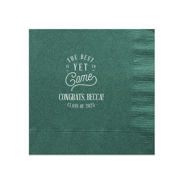 Zoom Show guides Loading product Best to Come Graduation Napkin Square Cocktail Napkin Design ID: 122010 Click on swatch to see options Choose Your Product Color Active Color 3 ply 3 ply Top quality 3 ply. Dyed tissue. Sand Black Slate Platinum Platinum Pin Dot Dove Gray Dove Gray Borderless White White Borderless White Pin Dot White Scallop Ivory Ivory Borderless Mimosa Lemon Pin Dot Kiwi Kiwi Pin Dot Leaf Pin Dot Spruce Pin Dot Olive Pin Dot Light Navy Dark Turquoise Pin Dot Turquoise Powder Blue Pin Dot Lavender Lavender Pin Dot Purple Merlot Pin Dot Fuchsia Candy Pink Antique Pink Pin Dot Ballet Pink Ballet Pink Borderless Convertible Red Light Coral Merlot Out Until: 2025-11-29 Tangerine Out Until: 2025-11-29 Linen Like* - Premium Product Linen Like* - Premium Product Absorbent. Dyed tissue. Airlaid. Premium pricing applies. Pebble Kraft Metallic Copper Ash Grey Black Charcoal Stone Gray Metallic Silver Fog White Ivory Cream Buttercream Metallic Gold Lemon Moss Green Olive Green Hunter Green Pastel Green Lime Eucalyptus Dark Turquoise Bright Sky Powder Blue Navy Lavender Berry Merlot Magenta Pink Pastel Pink Lipstick Red Terracotta Peach Mango Brown Out Until: 2025-11-21 Plum Out Until: 2025-11-13 Crosshatch* - Premium Product Crosshatch* - Premium Product Absorbent. Printed tissue. Airlaid. Premium pricing applies. Crosshatch Black Crosshatch Gray Crosshatch Stone Crosshatch Turquoise Crosshatch Violet Crosshatch Fuchsia Crosshatch Lipstick Red Crosshatch Key Lime Out Until: 2025-11-26 Crosshatch Green Out Until: 2025-11-29 Crosshatch Navy Out Until: 2025-11-24 Woven* - Premium Product Woven* - Premium Product Basketweave texture. Single-sided color. Premium pricing applies. Woven Sand Woven Copper Woven Black Woven Slate Woven Silver Woven Stone Woven Vanilla Woven White Woven Gold Woven Sage Woven Spruce Woven Powder Blue Woven Navy Woven Mauve Woven Convertible Red Woven Tumeric Patterned* - Premium Product Patterned* - Premium Product Exclusive FYP patterns. Single-sided color. Pindot embossed edge. Product pricing applies. Oak Wood Walnut Wood Ebony Wood Ash Wood Birch Wood Marble Sand Marble Gray Marble Navy Marble Taupe Marble Blush Ombre Black Ombre Navy Ombre Robin’s Egg Blue Ombre Rose Petal Ombre Coral Watercolor Sea Glass Watercolor Ocean Watercolor Nightfall Watercolor Sangria Watercolor Hibiscus Watercolor Rose Watercolor Sunrise Leaf Sand Leaf Fern Leaf Rain Leaf Rose Tie Dye Sunflower Tie Dye Leaf Tie Dye Turquoise Tie Dye Fuchsia Shimmer* - Premium Product Shimmer* - Premium Product Elegant European Stardream with iridescent finish. Single-sided color. Pindot embossed edge. Premium pricing applies. Champagne Soft Black Galvanized Silver Crystal White Ivory Pearl Gold Sage Navy Amethyst Herringbone* - Premium Product Herringbone* - Premium Product Absorbent. Printed Herringbone pattern. Airlaid. Premium pricing applies. Herringbone Vanilla Mocha Herringbone Gray Onyx Choose Your Imprint Foil Color Active Color Shiny Foil Shiny Foil Metallic, lustrous finish. *Specialty patterned foil may vary on final print Shiny Champagne Shiny Sterling Silver Shiny 18 Kt Gold Shiny Kiwi / Lime Shiny Leaf Shiny Jade Shiny Royal Blue Shiny Amethyst Shiny Fuchsia Shiny Rose Quartz Shiny Rose Gold NEW Shiny Merlot Shiny Convertible Red Shiny Poppy Shiny Copper *Shiny Holographic Gold *Shiny Holographic Silver *Shiny Rainbow Matte Foil Matte Foil Flat finish. Matte NEW Chocolate Matte Black Matte Slate Gray Matte Dove Grey Matte White Matte Ivory Matte Mimosa Yellow Matte Sunflower Matte Key Lime Matte Leaf Matte Spruce Matte Teal/Peacock Matte Azure Matte Royal Blue Matte Navy Matte Amethyst Matte Pastel Pink Matte Ballet Pink Matte Fuchsia Matte Lipstick Red Matte Merlot Matte Tangerine Satin Foil Satin Foil Muted sheen, brushed finish. Satin Sterling Silver Satin 18 Kt. Gold Satin Copper Penny Satin Fuchsia Satin Lipstick Red Satin Leaf Satin Teal / Peacock Satin French Blue Satin Plum Personalize Your Text Line 1 Line 2 Personalize further with different fonts, graphics, positioning, and sizes. (Optional) Customize More Choose Your Quantity Subtotal PRICE INCLUDES: Select a Proof Option: Print As Is I confirm that I have reviewed my design and I understand it will be produced as shown and no proof will be provided. Digital Proof + $15 I would like an expert FYP designer to look at my design, make minor corrections if necessary, and send me a black and white proof before the order is produced. Orders delivered as soon as 11.06.2025. Exclusions apply. Share Your Design About This Design Celebrate new beginnings with the Best to Come Graduation Napkin, featuring "The Best is yet to come" in a playful, winding script that symbolizes life's ongoing journey. Below, "Congrats" and the graduate's name in bold capitals, followed by the class year, complete this optimistic, forward-looking sentiment. Product Details Product Details Classic 3-ply tissue, 4.75” or 5” square Colors vary Signature foil stamp included Bulk discounts available Expedited shipping options available. Product Description Product Description Classic Cocktail Napkins are the perfect companion for any event. Add a touch of refinement to your cocktail parties, weddings, or birthday celebrations. Whether you're sipping a Martini, Old Fashioned, or a signature cocktail, these beverage napkins are the perfect accompaniment to elevate your drink service to new heights.Traditionally designed with a classic pleated edge, highly absorbent, durable, crafted from high-quality, premium-grade paper, our Classic Cocktail Napkins are an excellent, timeless choice. They are soft to the touch, keeping your guests' hands dry and your furniture protected. Once used, simply discard them, making cleanup a breeze. Explore our Cocktail Napkins Collection to find the perfect option for your event. Due to the complexities of manufacturing, the size of the embossed border on our 3-ply napkins may vary slightly. These discrepancies are a na