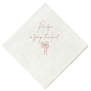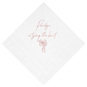 Zoom Show guides Loading product Bridal Bow Bliss Napkin Diamond Linen Like Cocktail Napkin Design ID: 2774559 Click on swatch to see options Choose Your Napkin Color Active Color Linen Like* - Premium Product Linen Like* - Premium Product Absorbent. Dyed tissue. Airlaid. Premium pricing applies. Pebble Kraft Ash Grey Black Charcoal Stone Gray Fog White Cream Buttercream Ivory Lemon Moss Green Olive Green Hunter Green Pastel Green Lime Eucalyptus Dark Turquoise Bright Sky Powder Blue Navy Lavender Berry Merlot Magenta Pastel Pink Pink Lipstick Red Terracotta Peach Mango Metallic Silver Metallic Gold Metallic Copper Brown Out Until: 2025-11-21 Plum Out Until: 2025-11-13 Crosshatch* - Premium Product Crosshatch* - Premium Product Absorbent. Printed tissue. Airlaid. Premium pricing applies. Crosshatch Black Crosshatch Gray Crosshatch Stone Crosshatch Turquoise Crosshatch Violet Crosshatch Fuchsia Crosshatch Lipstick Red Crosshatch Key Lime Out Until: 2025-11-26 Crosshatch Green Out Until: 2025-11-29 Crosshatch Navy Out Until: 2025-11-24 Herringbone* - Premium Product Herringbone* - Premium Product Absorbent. Printed Herringbone pattern. Airlaid. Premium pricing applies. Herringbone Vanilla Mocha Herringbone Gray Onyx Choose Your Imprint Foil Color Active Color Shiny Foil Shiny Foil Metallic, lustrous finish. *Specialty patterned foil may vary on final print Shiny Champagne Shiny Sterling Silver Shiny 18 Kt Gold Shiny Kiwi / Lime Shiny Leaf Shiny Jade Shiny Royal Blue Shiny Amethyst Shiny Fuchsia Shiny Rose Quartz Shiny Rose Gold NEW Shiny Merlot Shiny Convertible Red Shiny Poppy Shiny Copper *Shiny Holographic Gold *Shiny Holographic Silver *Shiny Rainbow Matte Foil Matte Foil Flat finish. Matte NEW Chocolate Matte Black Matte Slate Gray Matte Dove Grey Matte White Matte Ivory Matte Mimosa Yellow Matte Sunflower Matte Key Lime Matte Leaf Matte Spruce Matte Teal/Peacock Matte Azure Matte Royal Blue Matte Navy Matte Amethyst Matte Pastel Pink Matte Ballet Pink Matte Fuchsia Matte Lipstick Red Matte Merlot Matte Tangerine Satin Foil Satin Foil Muted sheen, brushed finish. Satin Sterling Silver Satin 18 Kt. Gold Satin Copper Penny Satin Fuchsia Satin Lipstick Red Satin Leaf Satin Teal / Peacock Satin French Blue Satin Plum Personalize Your Text Line 1 Line 2 Personalize further with different fonts, graphics, positioning, and sizes. (Optional) Customize More Choose Your Quantity Subtotal PRICE INCLUDES: Select a Proof Option: Print As Is I confirm that I have reviewed my design and I understand it will be produced as shown and no proof will be provided. Digital Proof + $15 I would like an expert FYP designer to look at my design, make minor corrections if necessary, and send me a black and white proof before the order is produced. Orders delivered as soon as 11.06.2025. Exclusions apply. Share Your Design About This Design Add a touch of romance to your bachelorette party or bridal shower with the Bridal Bow Bliss Napkin, personalized with the bride-to-be's name in a graceful script and the sweet phrase "is tying the knot," complemented by a trendy bow graphic. Product Details Product Details Deluxe air laid paper Measures approximately 5" x 5" Signature foil stamp included Bulk discounts available Expedited shipping options available. Product Description Product Description Introducing our custom Linen-Like Cocktail Napkins, the epitome of elegance and refinement for your sophisticated gatherings. Whether you're hosting a formal wedding reception or a chic cocktail soirée, these linen cocktail napkins effortlessly complement any table setting. Their soft and gentle touch will leave a lasting impression on guests, showcasing your commitment to providing a truly upscale experience. Meticulously crafted, these napkins exude the luxurious look and feel of fine linen while offering the convenience of being disposable. Crafted from premium-quality materials, they are highly absorbent and the same dimensions as our classic cocktail napkins. With the perfect blend of functionality and elegance, you can elevate any upscale bar or lounge. Product Options Diamond Linen Like Cocktail Napkin Diamond Linen Like Dinner Napkin Diamond Shimmer Cocktail Napkin Diamond Extra Large Dinner Napkin Diamond Petite Napkin Diamond Dinner Napkin Woven Diamond Cocktail Napkin Patterned Diamond Cocktail Napkin Diamond Linen Like Luncheon Napkin Diamond Luncheon Napkin Diamond Cocktail Napkin Related Products Diamond Linen Like Cocktail Napkin Diamond Linen Like Dinner Napkin Diamond Shimmer Cocktail Napkin Diamond Extra Large Dinner Napkin Diamond Petite Napkin Diamond Dinner Napkin Woven Diamond Cocktail Napkin Patterned Diamond Cocktail Napkin Diamond Linen Like Luncheon Napkin Diamond Luncheon Napkin Diamond Cocktail Napkin