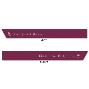 Zoom Show guides Loading product Cheers to the Bride Shower Ribbon 5/8" Measured Length Design ID: 88392 Click on swatch to see options Choose Your Product Color Active Color Ribbon Colors Ribbon Colors Champagne Copper Brownie Espresso Black Slate Sterling Silver White Pearl Gold Mimosa Sunflower Gold Kiwi/Lime Leaf Spruce Green Olive Pistachio Green Tea Teal Robin's Egg Blue Turquoise Dark Turquoise Navy Royal Blue Glacier Blue Sky Blue Lavender Violet Amethyst Cranberry Plum Candy Pink Rose Petal Fuchsia Brick Convertible Red Tangerine Coral Ivory Out Until: 2025-11-27 Ballet Pink Out Until: 2025-11-28 Choose Your Foil Active Color Matte Foil Matte Foil Flat finish. Matte Black Matte White Matte Navy Shiny Foil Shiny Foil Metallic, lustrous finish. *Specialty patterned foil may vary on final print Shiny Champagne Shiny Sterling Silver Shiny 18 Kt Gold Shiny Kiwi / Lime Shiny Leaf Shiny Jade Shiny Royal Blue Shiny Amethyst Shiny Fuchsia Shiny Rose Quartz Shiny Rose Gold Shiny Convertible Red Shiny Poppy Shiny Copper *Shiny Rainbow Satin Foil Satin Foil Muted sheen, brushed finish. Satin Sterling Silver Satin 18 Kt. Gold Satin Copper Penny Satin Fuchsia Satin Lipstick Red Satin Leaf Satin Teal / Peacock Satin French Blue Satin Plum Personalize Your Text Line 1 - Left Line 2 - Right Personalize further with different fonts, graphics, positioning, and sizes. (Optional) Customize More Choose Your Quantity Subtotal PRICE INCLUDES: Select a Proof Option: Print As Is I confirm that I have reviewed my design and I understand it will be produced as shown and no proof will be provided. Digital Proof + $15 I would like an expert FYP designer to look at my design, make minor corrections if necessary, and send me a black and white proof before the order is produced. Orders delivered as soon as 11.06.2025. Exclusions apply. Share Your Design About This Design Add a festive swirl to the bridal shower with the Cheers to the Bride Shower Ribbon, toasting to the guest of honor. Adorned with a playful wine glass and the bride's name, this ribbon weaves merriment throughout the décor, echoing joyful 'Cheers to the Bride' from every angle. Product Details Product Details Double-sided bridal satin ribbon Measures 5/8" high by 50 yards long Bulk discounts available Expedited shipping options available. Product Description Product Description Elevate the elegance of your party decor with our ⅝" Ribbon, the perfect choice to add a touch of sophistication to your celebrations. When you choose this customizable ribbon from For Your Party, you're opting for a versatile accessory that enhances a wide range of events and festivities. Whether you're planning a wedding, birthday party, baby shower, or corporate gala, our ⅝" ribbon is the ideal addition to make your decorations and favors truly stand out. Our ⅝" Ribbon boasts exceptional quality, featuring a smooth texture that adds a refined touch to your decor and gifts. It's designed for durability, ensuring your bows and accents remain pristine throughout your event. The convenience of customization allows you to tailor the ribbon to your unique style, making your decorations and favors truly one-of-a-kind. Add a custom tag to your party favors to complete the look! Product Options 5/8" Measured Length 7/8" Measured Length 1.5" Measured Length Related Products 5/8" Measured Length 7/8" Measured Length 1.5" Measured Length