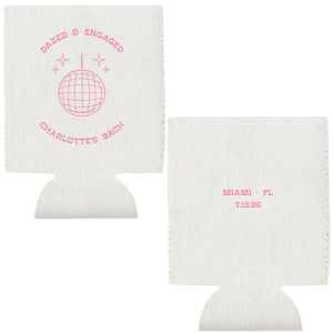 Zoom Show guides Loading product Dazed and Engaged Bachelorette Disco Ball Can Cooler Slim Can Cooler Design ID: 2666204 Click on swatch to see options Choose Your Product Color Active Color Cup Colors Cup Colors Black White Country Camo Dark Green Purple Slate Gray Navy Pink Red Royal Choose Your Screen Print Active Color Can Cooler Ink Can Cooler Ink Matte Chocolate Ink Matte Black Ink Matte Slate Gray Ink Matte White Ink Matte Ivory Ink Matte Sunflower Ink Matte Moss Green Ink Matte Sage Ink Matte Leaf Ink Matte Spruce Matte Teal/Peacock Ink Matte Sky Blue Ink Matte French Blue Ink Matte Royal Blue Ink Matte Navy Ink Matte Cobalt Ink Matte Lavender Ink Matte Ballet Pink Ink Matte Fuchsia Ink Matte Lipstick Red Ink Matte Merlot Ink Matte Tangerine Ink Metallic Silver Ink Metallic Gold Ink Personalize Your Text Line 1 Line 2 Line 3 Line 4 Personalize further with different fonts, graphics, positioning, and sizes. (Optional) Customize More Choose Your Quantity Subtotal PRICE INCLUDES: Select a Proof Option: Print As Is I confirm that I have reviewed my design and I understand it will be produced as shown and no proof will be provided. Digital Proof + $15 I would like an expert FYP designer to look at my design, make minor corrections if necessary, and send me a black and white proof before the order is produced. Orders delivered as soon as 01.08.2026. Exclusions apply. Share Your Design About This Design The Dazed and Engaged Bachelorette Disco Ball Can Cooler is a funky and fun accessory that will add some sparkle to your bachelorette or engagement party! It is the perfect way to show off your style and celebrate your upcoming nuptials. Customize with the location of your event, name, and date for a perfectly personalized party accessory. Product Details Product Details Minimum order of 12 Measures 5.5" tall and 3.125" wide Screen printed and reusable Bulk discounts available Expedited shipping options available. Product Description Product Description Want to make your party unforgettable? Custom printed can coolers give any party a dose of fun. They’re of course great for home entertaining, but we also love them as an unexpected souvenir for even the most formal weddings. Like our flat can coolers, our slim can coolers are made of premium neoprene, and pack flat for easy travel. They’re an extra 1.5” long to keep a taller 16 oz drink can ice cold. Best of all, they’re customizable on both sides and can be used again and again. Product Options Slim Can Cooler Flat Can Cooler Round Can Cooler Related Products Slim Can Cooler Flat Can Cooler Round Can Cooler