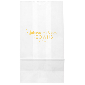 Zoom Show guides Loading product Future Mr and Mrs Bag Small Cellophane Bag Design ID: 8008 Click on swatch to see options Choose Your Imprint Foil Color Active Color Shiny Foil Shiny Foil Metallic, lustrous finish. *Specialty patterned foil may vary on final print Shiny Champagne Shiny Sterling Silver Shiny 18 Kt Gold Shiny Kiwi / Lime Shiny Leaf Shiny Jade Shiny Royal Blue Shiny Amethyst Shiny Fuchsia Shiny Rose Quartz Shiny Rose Gold NEW Shiny Merlot Shiny Convertible Red Shiny Poppy Shiny Copper *Shiny Holographic Gold *Shiny Holographic Silver *Shiny Rainbow Matte Foil Matte Foil Flat finish. Matte NEW Chocolate Matte Black Matte Slate Gray Matte Dove Grey Matte White Matte Ivory Matte Mimosa Yellow Matte Sunflower Matte Key Lime Matte Leaf Matte Spruce Matte Teal/Peacock Matte Azure Matte Royal Blue Matte Navy Matte Amethyst Matte Pastel Pink Matte Ballet Pink Matte Fuchsia Matte Lipstick Red Matte Merlot Matte Tangerine Satin Foil Satin Foil Muted sheen, brushed finish. Satin Sterling Silver Satin 18 Kt. Gold Satin Copper Penny Satin Fuchsia Satin Lipstick Red Satin Leaf Satin Teal / Peacock Satin French Blue Satin Plum Choose Your Tissue Color Active Color Tissue Paper Tissue Paper Turquoise 10 sheets Lavender 10 sheets Pink 8 sheets Red 8 sheets None Brown 10 sheets Out Until: 2025-12-01 Black 10 sheets Out Until: 2025-12-01 Ivory 10 sheets Out Until: 2025-12-01 Royal Blue 10 sheets Out Until: 2025-12-01 Light Blue 10 sheets Out Until: 2025-12-01 Fuchsia 10 sheets Out Until: 2025-12-01 Personalize Your Text Line 1 Line 2 Personalize further with different fonts, graphics, positioning, and sizes. (Optional) Customize More Choose Your Quantity Subtotal PRICE INCLUDES: Select a Proof Option: Print As Is I confirm that I have reviewed my design and I understand it will be produced as shown and no proof will be provided. Digital Proof + $15 I would like an expert FYP designer to look at my design, make minor corrections if necessary, and send me a black and white proof before the order is produced. Orders delivered as soon as 12.18.2025. Exclusions apply. Share Your Design About This Design ForYourParty's chic Shiny Copper Large Cellophane Bag with Shiny Copper Foil Color couldn't be more perfect. It's time to show off your impeccable taste. Product Details Product Details Minimum order of 25 Measures 3.75" wide by 6.25" high Non-gusseted clear plastic Bulk discounts available Expedited shipping options available. Product Description Product Description Introducing our Custom Small Cellophane Bags – the perfect choice to add a touch of personalization and elegance to your next celebration. When you opt for these custom bags from For Your Party, you're choosing a versatile accessory that can elevate a wide range of events and gatherings. From weddings and bridal showers to baby showers and corporate functions, these bags are the ideal addition to make your event truly special. Crafted with top-notch cellophane material, our bags offer exceptional quality, ensuring your treats are showcased beautifully while remaining fresh and intact. They are designed for convenience, making them perfect for packaging party favors, candies, and small gifts. With a variety of design options available, you can easily tailor them to match your party's theme or color scheme. Check out our other bags too! Product Options Small Cellophane Bag Popcorn Bag Gloss Goodie Bag Cookie Bag Lunch Bag Related Products Small Cellophane Bag Popcorn Bag Gloss Goodie Bag Cookie Bag Lunch Bag