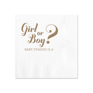Zoom Show guides Loading product Gender Reveal Napkin Diamond Top Scalloped Luncheon Napkin Design ID: 1989997 Click on swatch to see options Choose Your Product Color Active Color Linen Like* - Premium Product Linen Like* - Premium Product Absorbent. Dyed tissue. Airlaid. Premium pricing applies. White Ivory Choose Your Imprint Foil Color Active Color Shiny Foil Shiny Foil Metallic, lustrous finish. *Specialty patterned foil may vary on final print Shiny Champagne Shiny Sterling Silver Shiny 18 Kt Gold Shiny Kiwi / Lime Shiny Leaf Shiny Jade Shiny Royal Blue Shiny Amethyst Shiny Fuchsia Shiny Rose Quartz Shiny Rose Gold NEW Shiny Merlot Shiny Convertible Red Shiny Poppy Shiny Copper *Shiny Holographic Gold *Shiny Holographic Silver *Shiny Rainbow Matte Foil Matte Foil Flat finish. Matte NEW Chocolate Matte Black Matte Slate Gray Matte Dove Grey Matte White Matte Ivory Matte Mimosa Yellow Matte Sunflower Matte Key Lime Matte Leaf Matte Spruce Matte Teal/Peacock Matte Azure Matte Royal Blue Matte Navy Matte Amethyst Matte Pastel Pink Matte Ballet Pink Matte Fuchsia Matte Lipstick Red Matte Merlot Matte Tangerine Satin Foil Satin Foil Muted sheen, brushed finish. Satin Sterling Silver Satin 18 Kt. Gold Satin Copper Penny Satin Fuchsia Satin Lipstick Red Satin Leaf Satin Teal / Peacock Satin French Blue Satin Plum Personalize Your Text Line 1 Personalize further with different fonts, graphics, positioning, and sizes. (Optional) Customize More Choose Your Quantity Subtotal PRICE INCLUDES: Select a Proof Option: Print As Is I confirm that I have reviewed my design and I understand it will be produced as shown and no proof will be provided. Digital Proof + $15 I would like an expert FYP designer to look at my design, make minor corrections if necessary, and send me a black and white proof before the order is produced. Orders delivered as soon as 11.12.2025. Exclusions apply. Share Your Design About This Design If you are celebrating a baby shower or gender reveal party, this napkin is a creative way to have people guess. Customize with the your last name and have your guests guess what your baby will be. Product Details Product Details Classic 3-ply paper Measures approximately 6.25" x 6.25" Signature foil stamp included Expedited shipping options available. Product Description Product Description Our linen like Scalloped Luncheon Napkins are the perfect complement to any elegant and vintage-inspired get-together. Whether it’s a classic bridal shower or a thoughtful birthday party, Scalloped Luncheon Napkins are a great way to celebrate a special occasion and and wow your guests. Made from the same fabric as our linen like Luncheon Napkins, our Scalloped Luncheon Napkins have a distinct triangle shape with a scalloped edge and a coined pattern. These details make for a napkin that is dripping with old-style charm, and evokes gatherings of yesteryear. They’re the perfect canvas to combine with a contemporary design for an instant party classic! Product Options Diamond Top Scalloped Luncheon Napkin Square Cocktail Napkin Square Luncheon Napkin Square Shimmer Luncheon Napkin Square Linen Like Luncheon Napkin Patterned Square Cocktail Napkin Woven Square Cocktail Napkin Paper Guest Towel Square Dinner Napkin Shimmer Guest Hand Towel Paper Guest Towel Square Petite Napkin Square Cocktail Napkin 4 ply Square Shimmer Cocktail Napkin Square Linen Like Cocktail Napkin Square Crosshatch Cocktail Napkin Square Linen Like Dinner Napkin Folded Linen Like Dinner Napkin Related Products Diamond Top Scalloped Luncheon Napkin Square Cocktail Napkin Square Luncheon Napkin Square Shimmer Luncheon Napkin Square Linen Like Luncheon Napkin Patterned Square Cocktail Napkin Woven Square Cocktail Napkin Paper Guest Towel Square Dinner Napkin Shimmer Guest Hand Towel Paper Guest Towel Square Petite Napkin Square Cocktail Napkin 4 ply Square Shimmer Cocktail Napkin Square Linen Like Cocktail Napkin Square Crosshatch Cocktail Napkin Square Linen Like Dinner Napkin Folded Linen Like Dinner Napkin