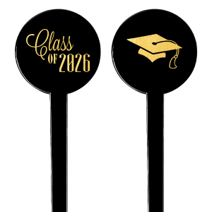 Zoom Show guides Loading product Graduation Cap Stir Stick Round Stir Stick Design ID: 5731 Click on swatch to see options Choose Your Imprint Foil Color Active Color Shiny Foil Shiny Foil Metallic, lustrous finish. *Specialty patterned foil may vary on final print Shiny Champagne Shiny Sterling Silver Shiny 18 Kt Gold Shiny Kiwi / Lime Shiny Leaf Shiny Jade Shiny Royal Blue Shiny Amethyst Shiny Fuchsia Shiny Rose Quartz Shiny Rose Gold NEW Shiny Merlot Shiny Convertible Red Shiny Poppy Shiny Copper *Shiny Holographic Gold *Shiny Holographic Silver *Shiny Rainbow Matte Foil Matte Foil Flat finish. Matte NEW Chocolate Matte Black Matte Slate Gray Matte Dove Grey Matte White Matte Ivory Matte Mimosa Yellow Matte Sunflower Matte Key Lime Matte Leaf Matte Spruce Matte Teal/Peacock Matte Azure Matte Royal Blue Matte Navy Matte Amethyst Matte Pastel Pink Matte Ballet Pink Matte Fuchsia Matte Lipstick Red Matte Merlot Matte Tangerine Satin Foil Satin Foil Muted sheen, brushed finish. Satin Sterling Silver Satin 18 Kt. Gold Satin Copper Penny Satin Fuchsia Satin Lipstick Red Satin Leaf Satin Teal / Peacock Satin French Blue Satin Plum Personalize Your Text Line 3 Personalize further with different fonts, graphics, positioning, and sizes. (Optional) Customize More Choose Your Quantity Subtotal PRICE INCLUDES: Select a Proof Option: Print As Is I confirm that I have reviewed my design and I understand it will be produced as shown and no proof will be provided. Digital Proof + $15 I would like an expert FYP designer to look at my design, make minor corrections if necessary, and send me a black and white proof before the order is produced. Orders delivered as soon as 01.06.2026. Exclusions apply. Share Your Design About This Design Stir up success with the Graduation Cap Stir Stick, where a soaring cap adds festive flair to your beverages. 'Class of' and the graduation year on the reverse side elevate each drink to honor the graduate's hard-earned achievement. Product Details Product Details Minimum order of 100 Made from natural wood Measures 6" tall with a 1" wide head Expedited shipping options available. Product Description Product Description Our Stir Sticks are biodegradable with a beautiful wood finish. Available in three shapes, you can personalize the head of this product with one of our premade designs or create something from scratch in the FYP Customizer. As these are a natural item, variations and splintering may occur on these eco friendly stir sticks. For a different option, explore our plastic stir sticks. Their glossy finish and sturdy build make them a durable choice and add a modern look to your signature cocktails. Personalize your Stir Sticks with text and illustrations from our extensive, designer-curated collection. With over 100 paper colors, 150 fonts, 50 foil colors and 1,300 clipart images, you can create the perfect party accessories for your event. You also have the option to Upload Your Own Art for a truly unique product. Please note that because of their size, only certain designs will fit on your Stir Sticks. Product Options Round Stir Stick Oval Stir Stick Round Plastic Stir Stick Square Plastic Stir Stick Rectangle Stir Stick 2-sided Related Products Round Stir Stick Oval Stir Stick Round Plastic Stir Stick Square Plastic Stir Stick Rectangle Stir Stick 2-sided