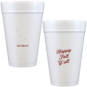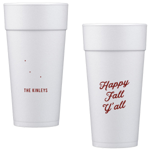 Zoom Show guides Loading product Happy Fall Y'all Cup 12-oz. Styrofoam Cup Design ID: 327890 Click on swatch to see options Choose Your Screen Print Active Color Matte Cup Ink Matte Cup Ink Matte Black Ink Matte Slate Gray Ink Matte Moss Green Ink Matte Leaf Ink Matte Spruce Matte Sky Blue Ink Matte Royal Blue Ink Matte Navy Ink Matte Cobalt Ink Matte Ballet Pink Ink Matte Fuchsia Ink Matte Lipstick Red Ink Matte Merlot Ink Metallic Cup Ink Metallic Cup Ink Silver Ink Gold Ink Copper Ink Personalize Your Text Line 1 - Front Personalize further with different fonts, graphics, positioning, and sizes. (Optional) Customize More Choose Your Quantity Subtotal PRICE INCLUDES: Select a Proof Option: Print As Is I confirm that I have reviewed my design and I understand it will be produced as shown and no proof will be provided. Digital Proof + $15 I would like an expert FYP designer to look at my design, make minor corrections if necessary, and send me a black and white proof before the order is produced. Orders delivered as soon as 11.07.2025. Exclusions apply. Share Your Design About This Design celebrate the autumn season with the Happy Fall Y'all Cup. Printed in your choice of cup style and ink color, make your family gatherings all the more personal this season. Product Details Product Details Minimum order of 50 Measures 4.5" tall and 3.5" wide at the top Ideal for coffee and tea Recyclable Bulk discounts available Expedited shipping options available. Product Description Product Description Want the customization of our custom cups, but easier clean-up? Our styrofoam cups are the answer. Custom printed cups are great for your bachelorette party, or any time where you’re on the go and can’t stop to clean! Like their frost flex siblings, these are a compact 12 oz. package that can be customized with your art. Recyclable styrofoam is great for convenience and versatility—these cups can serve up hot or cold drinks, and no washing needed. Try them for coffee or mixed drinks at your next party! Product Options 12-oz. Styrofoam Cup 16-oz. Styrofoam Cup 20-oz. Styrofoam Cup 24-oz. Styrofoam Cup 32-oz. Styrofoam Cup 8-oz.Frosted Cup 12-oz. Frosted Cup 14-oz.Frosted Cup 16-oz. Frosted Cup 20-oz. Frosted Cup 24-oz. Frosted Cup 12-oz. Stadium Cup 16-oz.Stadium Cup 22-oz. Stadium Cup 32-oz. Stadium Cup 8-oz. Hard Plastic Cup 10-oz. Hard Plastic Cup 12-oz. Hard Plastic Cup 14-oz. Hard Plastic Cup 16-oz. Hard Plastic Cup Related Products 12-oz. Styrofoam Cup 16-oz. Styrofoam Cup 20-oz. Styrofoam Cup 24-oz. Styrofoam Cup 32-oz. Styrofoam Cup 8-oz.Frosted Cup 12-oz. Frosted Cup 14-oz.Frosted Cup 16-oz. Frosted Cup 20-oz. Frosted Cup 24-oz. Frosted Cup 12-oz. Stadium Cup 16-oz.Stadium Cup 22-oz. Stadium Cup 32-oz. Stadium Cup 8-oz. Hard Plastic Cup 10-oz. Hard Plastic Cup 12-oz. Hard Plastic Cup 14-oz. Hard Plastic Cup 16-oz. Hard Plastic Cup