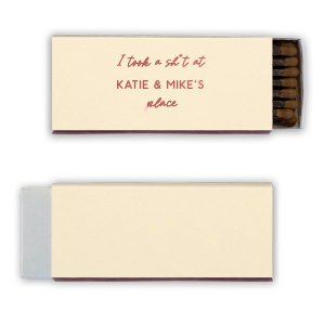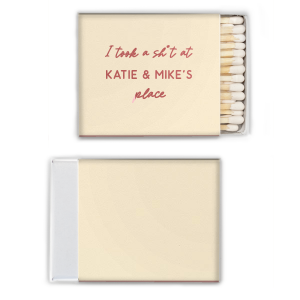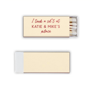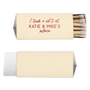 Zoom Show guides Loading product I Took A Sh*t At Their Place Matches 30-Strike Matchbook Design ID: 2530093 Click on swatch to see options Choose Your Paper Color Active Color Shimmer Colors Shimmer Colors Our Stardream papers have a pearl, iridescent quality that creates a sophisticated look and feel. Shimmer Ivory Shimmer Crystal White Shimmer Navy Shimmer Champagne Shimmer Black Ore Shimmer Slate Shimmer 18k Gold Shimmer White Peach Fuzz Shimmer Silver Natural Colors Natural Colors Smooth, matte finish. Double-sided color. 80lb+ cover stock. Natural White Natural Vanilla Natural Black Natural Khaki Natural French Blue Natural NEW Dark Sage Natural Slate Natural Navy Natural Smoke Natural Spruce Natural Hot Pink Natural Lilac Natural Milk Chocolate Choose Your Imprint Foil Color Active Color Shiny Foil Shiny Foil Metallic, lustrous finish. *Specialty patterned foil may vary on final print Shiny Champagne Shiny Sterling Silver Shiny 18 Kt Gold Shiny Kiwi / Lime Shiny Leaf Shiny Jade Shiny Royal Blue Shiny Amethyst Shiny Fuchsia Shiny Rose Quartz Shiny Rose Gold NEW Shiny Merlot Shiny Convertible Red Shiny Poppy Shiny Copper *Shiny Holographic Gold *Shiny Holographic Silver *Shiny Rainbow Matte Foil Matte Foil Flat finish. Matte NEW Chocolate Matte Black Matte Slate Gray Matte Dove Grey Matte White Matte Ivory Matte Mimosa Yellow Matte Sunflower Matte Key Lime Matte Leaf Matte Spruce Matte Teal/Peacock Matte Azure Matte Royal Blue Matte Navy Matte Amethyst Matte Pastel Pink Matte Ballet Pink Matte Fuchsia Matte Lipstick Red Matte Merlot Matte Tangerine Satin Foil Satin Foil Muted sheen, brushed finish. Satin Sterling Silver Satin 18 Kt. Gold Satin Copper Penny Satin Fuchsia Satin Lipstick Red Satin Leaf Satin Teal / Peacock Satin French Blue Satin Plum Personalize Your Text Line 1 Line 2 Line 3 Personalize further with different fonts, graphics, positioning, and sizes. (Optional) Customize More Choose Your Quantity Subtotal PRICE INCLUDES: Select a Proof Option: Print As Is I confirm that I have reviewed my design and I understand it will be produced as shown and no proof will be provided. Digital Proof + $15 I would like an expert FYP designer to look at my design, make minor corrections if necessary, and send me a black and white proof before the order is produced. Orders delivered as soon as 11.05.2025. Exclusions apply. Share Your Design About This Design Get fancy with these funny I Took A Sh*t At Their Place Matches. Bring smile on people faces and make yourself recognizable. Expect a lot of compliments for the creativity. Product Details Product Details a manufacturer’s mark may appear on the bottom edge 50 minimum 2" w X 1.875" h 30 matches Expedited options available a safety message may appear inside the top flap Product Description Product Description For Your Party’s 30 strike matchbooks are the perfect accessory, whether it’s a bowl of them in your apartment or a favor at your wedding! Increasingly the choice of TikTok and those in the know, our 30 strike matchbooks are a perfect way to send a message and stand out. Made out of durable paper stock, our 30 strike matchbooks come in several different colors so you can match (no pun intended) your vibe exactly. Like our classic matchboxes, they come in a wide variety of foil printing options, so get creative and impress your friends! **A manufacturer’s mark will appear on the bottom edge of your matches and a safety message will appear inside the top flap of the matchbook. These are required by law. Minor markings may occur during transit. Product Options 30-Strike Matchbook Classic Matchbox Candle Matchbox Cigar Matchbox Square Matchbox Mini Matchbox Lipstick Matchbox Triangle Matchbox Related Products 30-Strike Matchbook Classic Matchbox Candle Matchbox Cigar Matchbox Square Matchbox Mini Matchbox Lipstick Matchbox Triangle Matchbox
