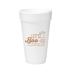 Zoom Show guides Loading product Let's Boo-gie Cup 12-oz. Styrofoam Cup Design ID: 297540 Click on swatch to see options Choose Your Screen Print Active Color Matte Cup Ink Matte Cup Ink Matte Black Ink Matte Slate Gray Ink Matte Moss Green Ink Matte Leaf Ink Matte Spruce Matte Sky Blue Ink Matte Royal Blue Ink Matte Navy Ink Matte Cobalt Ink Matte Ballet Pink Ink Matte Fuchsia Ink Matte Lipstick Red Ink Matte Merlot Ink Metallic Cup Ink Metallic Cup Ink Silver Ink Gold Ink Copper Ink Personalize Your Text Line 1 Line 2 Personalize further with different fonts, graphics, positioning, and sizes. (Optional) Customize More Choose Your Quantity Subtotal PRICE INCLUDES: Select a Proof Option: Print As Is I confirm that I have reviewed my design and I understand it will be produced as shown and no proof will be provided. Digital Proof + $15 I would like an expert FYP designer to look at my design, make minor corrections if necessary, and send me a black and white proof before the order is produced. Orders delivered as soon as 12.17.2025. Exclusions apply. Share Your Design About This Design Our custom Copper Ink 12 oz Styrofoam Cup with Copper Ink Cup Ink Colors has a Ghost graphic and is good for use in Halloween themed parties and will look fabulous with your unique touch. Your guests will agree! Product Details Product Details Minimum order of 50 Measures 4.5" tall and 3.5" wide at the top Ideal for coffee and tea Recyclable Bulk discounts available Expedited shipping options available. Product Description Product Description Want the customization of our custom cups, but easier clean-up? Our styrofoam cups are the answer. Custom printed cups are great for your bachelorette party, or any time where you’re on the go and can’t stop to clean! Like their frost flex siblings, these are a compact 12 oz. package that can be customized with your art. Recyclable styrofoam is great for convenience and versatility—these cups can serve up hot or cold drinks, and no washing needed. Try them for coffee or mixed drinks at your next party! Product Options 12-oz. Styrofoam Cup 16-oz. Styrofoam Cup 20-oz. Styrofoam Cup 24-oz. Styrofoam Cup 32-oz. Styrofoam Cup Related Products 12-oz. Styrofoam Cup 16-oz. Styrofoam Cup 20-oz. Styrofoam Cup 24-oz. Styrofoam Cup 32-oz. Styrofoam Cup