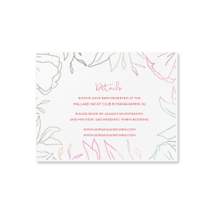 Zoom Show guides Loading product Linear Floral Details Card A2 Details Horizontal Design ID: 806771 Click on swatch to see options Choose Your Paper Color Active Color Invitation Invitation Digital White Choose Your Foil Active Color Shiny Foil Shiny Foil Metallic, lustrous finish. *Specialty patterned foil may vary on final print Shiny Champagne Shiny Sterling Silver Shiny 18 Kt Gold Shiny Kiwi / Lime Shiny Leaf Shiny Jade Shiny Royal Blue Shiny Amethyst Shiny Fuchsia Shiny Rose Quartz Shiny Rose Gold NEW Shiny Merlot Shiny Convertible Red Shiny Poppy Shiny Copper *Shiny Holographic Gold *Shiny Holographic Silver *Shiny Rainbow Matte Foil Matte Foil Flat finish. Matte NEW Chocolate Matte Black Matte Slate Gray Matte Dove Grey Matte White Matte Ivory Matte Mimosa Yellow Matte Sunflower Matte Key Lime Matte Leaf Matte Spruce Matte Teal/Peacock Matte Azure Matte Royal Blue Matte Navy Matte Amethyst Matte Pastel Pink Matte Ballet Pink Matte Fuchsia Matte Lipstick Red Matte Merlot Matte Tangerine Satin Foil Satin Foil Muted sheen, brushed finish. Satin Sterling Silver Satin 18 Kt. Gold Satin Copper Penny Satin Fuchsia Satin Lipstick Red Satin Leaf Satin Teal / Peacock Satin French Blue Satin Plum Personalize Your Text Line 1 Line 2 Line 3 Line 4 Personalize further with different fonts, graphics, positioning, and sizes. (Optional) Customize More Choose Your Quantity Subtotal PRICE INCLUDES: Select a Proof Option: Print As Is I confirm that I have reviewed my design and I understand it will be produced as shown and no proof will be provided. Digital Proof + $15 I would like an expert FYP designer to look at my design, make minor corrections if necessary, and send me a black and white proof before the order is produced. Orders delivered as soon as 12.15.2025. Exclusions apply. Share Your Design About This Design The ever-popular Full Color with Foil Details Card is printed with Full Color Digital Print Design, Shiny Amethyst Imprint Foil and is printed on a 115 lb. Smooth Natural White paper stock and couldn't be more perfect. It's time to show off your impeccable taste. Product Details Product Details Custom photo digital printed design with artisan-quality foil stamping. Product Description Product Description Elevate your occasion with our Custom Photo with Foil Printing Details Cards. Take your event to the next level with these meticulously crafted cards that blend personalized photos with the shimmering allure of foil printing. Whether it's a wedding, anniversary, birthday bash, or corporate gathering, these cards add a unique charm that's bound to captivate your guests. Check out how-to tips on designing the most memorable event invitations on our website. Crafted with meticulous attention to quality, these details cards boast a luxurious texture that exudes sophistication. The foil printing lends an enchanting gleam, catching every eye and making your event details truly stand out. With unwavering durability, these cards serve as delightful keepsakes for your attendees. Their convenient size ensures easy handling, while the thoughtfully curated designs effortlessly match your event's theme. Choose these cards for an unmatched blend of style and substance, and enjoy hassle-free customization to make them uniquely yours. Discover more ways to make your celebration unforgettable by visiting our page on event inspiration! Product Options A2 Details Horizontal A2 Details Horizontal Related Products A2 Details Horizontal A2 Details Horizontal