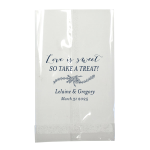 Zoom Show guides Loading product Love is Sweet Rose Flourish Bag Large Cellophane Bag Design ID: 59528 Click on swatch to see options Choose Your Imprint Foil Color Active Color Shiny Foil Shiny Foil Metallic, lustrous finish. *Specialty patterned foil may vary on final print Shiny Champagne Shiny Sterling Silver Shiny 18 Kt Gold Shiny Kiwi / Lime Shiny Leaf Shiny Jade Shiny Royal Blue Shiny Amethyst Shiny Fuchsia Shiny Rose Quartz Shiny Rose Gold NEW Shiny Merlot Shiny Convertible Red Shiny Poppy Shiny Copper *Shiny Holographic Gold *Shiny Holographic Silver *Shiny Rainbow Matte Foil Matte Foil Flat finish. Matte NEW Chocolate Matte Black Matte Slate Gray Matte Dove Grey Matte White Matte Ivory Matte Mimosa Yellow Matte Sunflower Matte Key Lime Matte Leaf Matte Spruce Matte Teal/Peacock Matte Azure Matte Royal Blue Matte Navy Matte Amethyst Matte Pastel Pink Matte Ballet Pink Matte Fuchsia Matte Lipstick Red Matte Merlot Matte Tangerine Satin Foil Satin Foil Muted sheen, brushed finish. Satin Sterling Silver Satin 18 Kt. Gold Satin Copper Penny Satin Fuchsia Satin Lipstick Red Satin Leaf Satin Teal / Peacock Satin French Blue Satin Plum Choose Your Tissue Color Active Color Tissue Paper Tissue Paper Turquoise 10 sheets Lavender 10 sheets Pink 8 sheets Red 8 sheets None Brown 10 sheets Out Until: 2025-10-30 Black 10 sheets Out Until: 2025-10-29 Ivory 10 sheets Out Until: 2025-10-30 Royal Blue 10 sheets Out Until: 2025-11-27 Light Blue 10 sheets Out Until: 2025-10-30 Fuchsia 10 sheets Out Until: 2025-10-30 Personalize Your Text Line 1 Line 2 Personalize further with different fonts, graphics, positioning, and sizes. (Optional) Customize More Choose Your Quantity Subtotal PRICE INCLUDES: Select a Proof Option: Print As Is I confirm that I have reviewed my design and I understand it will be produced as shown and no proof will be provided. Digital Proof + $15 I would like an expert FYP designer to look at my design, make minor corrections if necessary, and send me a black and white proof before the order is produced. Orders delivered as soon as 11.06.2025. Exclusions apply. Share Your Design About This Design The Love is Sweet Rose Flourish Bag is a delightful token of gratitude for any celebration. Adorned with the heartfelt phrase "Love is Sweet, So take a Treat!" and a graceful rose garland, it's personalized with the couple's names and date, offering a charming way to share joyous treats. Product Details Product Details Minimum order of 25 Measures 4" wide by 9" high Non-gusseted clear plastic Bulk discounts available Expedited shipping options available. Product Description Product Description Our Custom Large Cellophane Bags are the ultimate choice for adding a personalized and practical touch to your party favors and goodies. Ideal for weddings, holiday gatherings, corporate parties, and large-scale celebrations, our custom cellophane bags allow you to make a lasting impression on your guests. Crafted with top-quality cellophane material, our bags offer exceptional texture and durability, ensuring your treats remain fresh and presentable. These bags are incredibly convenient to use, allowing you to effortlessly display and distribute your party favors. With a multitude of customizable designs, you can easily match them to your event's theme or color palette. Check out our other bags too! Product Options Large Cellophane Bag Small Cellophane Bag Popcorn Bag Gloss Goodie Bag Lunch Bag Cookie Bag Related Products Large Cellophane Bag Small Cellophane Bag Popcorn Bag Gloss Goodie Bag Lunch Bag Cookie Bag