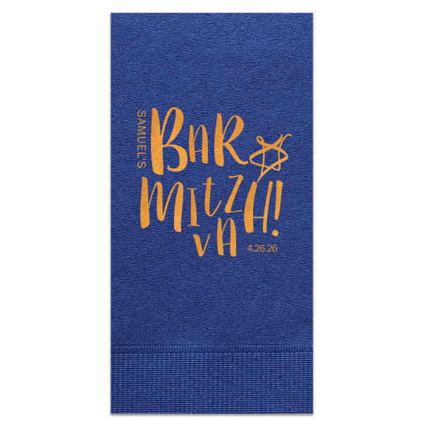 Zoom Show guides Loading product Mitzvah Star Napkin Square Cocktail Napkin Design ID: 5877 Click on swatch to see options Choose Your Product Color Active Color 3 ply 3 ply Top quality 3 ply. Dyed tissue. Sand Black Slate Platinum Platinum Pin Dot Dove Gray Dove Gray Borderless White White Borderless White Pin Dot White Scallop Ivory Ivory Borderless Mimosa Lemon Pin Dot Kiwi Kiwi Pin Dot Leaf Pin Dot Spruce Pin Dot Olive Pin Dot Light Navy Dark Turquoise Pin Dot Turquoise Powder Blue Pin Dot Lavender Lavender Pin Dot Purple Merlot Pin Dot Candy Pink Antique Pink Pin Dot Ballet Pink Ballet Pink Borderless Convertible Red Light Coral Merlot Out Until: 2025-12-22 Fuchsia Out Until: 2026-01-05 Linen Like* - Premium Product Linen Like* - Premium Product Absorbent. Dyed tissue. Airlaid. Premium pricing applies. Pebble Kraft Ash Grey Black Charcoal Stone Gray Metallic Silver Fog White Cream Buttercream Lemon Moss Green Hunter Green Pastel Green Lime Eucalyptus Dark Turquoise Bright Sky Powder Blue Navy Lavender Magenta Pink Pastel Pink Terracotta Peach Mango Metallic Copper Out Until: 2026-01-08 Brown Out Until: 2025-12-26 Ivory Out Until: 2026-01-02 Metallic Gold Out Until: 2025-12-24 Olive Green Out Until: 2025-12-26 Berry Out Until: 2025-12-28 Merlot Out Until: 2025-12-25 Lipstick Red Out Until: 2025-12-19 Crosshatch* - Premium Product Crosshatch* - Premium Product Absorbent. Printed tissue. Airlaid. Premium pricing applies. Crosshatch Black Crosshatch Gray Crosshatch Green Crosshatch Turquoise Crosshatch Violet Crosshatch Lipstick Red Crosshatch Stone Out Until: 2025-12-15 Crosshatch Key Lime Out Until: 2026-01-01 Crosshatch Navy Out Until: 2026-01-01 Crosshatch Fuchsia Out Until: 2025-12-27 Woven* - Premium Product Woven* - Premium Product Basketweave texture. Single-sided color. Premium pricing applies. Woven Sand Woven Copper Woven Black Woven Slate Woven Silver Woven Stone Woven Vanilla Woven White Woven Gold Woven Sage Woven Spruce Woven Powder Blue Woven Navy Woven Mauve Woven Convertible Red Woven Tumeric Patterned* - Premium Product Patterned* - Premium Product Exclusive FYP patterns. Single-sided color. Pindot embossed edge. Product pricing applies. Oak Wood Walnut Wood Ebony Wood Ash Wood Birch Wood Marble Sand Marble Gray Marble Navy Marble Taupe Marble Blush Ombre Black Ombre Navy Ombre Robin’s Egg Blue Ombre Rose Petal Ombre Coral Watercolor Sea Glass Watercolor Ocean Watercolor Nightfall Watercolor Sangria Watercolor Hibiscus Watercolor Rose Watercolor Sunrise Leaf Sand Leaf Fern Leaf Rain Leaf Rose Tie Dye Sunflower Tie Dye Leaf Tie Dye Turquoise Tie Dye Fuchsia Shimmer* - Premium Product Shimmer* - Premium Product Elegant European Stardream with iridescent finish. Single-sided color. Pindot embossed edge. Premium pricing applies. Champagne Soft Black Galvanized Silver Crystal White Ivory Pearl Gold Sage Navy Amethyst Herringbone* - Premium Product Herringbone* - Premium Product Absorbent. Printed Herringbone pattern. Airlaid. Premium pricing applies. Herringbone Vanilla Mocha Herringbone Gray Onyx Choose Your Imprint Foil Color Active Color Shiny Foil Shiny Foil Metallic, lustrous finish. *Specialty patterned foil may vary on final print Shiny Champagne Shiny Sterling Silver Shiny 18 Kt Gold Shiny Kiwi / Lime Shiny Leaf Shiny Jade Shiny Royal Blue Shiny Amethyst Shiny Fuchsia Shiny Rose Quartz Shiny Rose Gold NEW Shiny Merlot Shiny Convertible Red Shiny Poppy Shiny Copper *Shiny Holographic Gold *Shiny Holographic Silver *Shiny Rainbow Matte Foil Matte Foil Flat finish. Matte NEW Chocolate Matte Black Matte Slate Gray Matte Dove Grey Matte White Matte Ivory Matte Mimosa Yellow Matte Sunflower Matte Key Lime Matte Leaf Matte Spruce Matte Teal/Peacock Matte Azure Matte Royal Blue Matte Navy Matte Amethyst Matte Pastel Pink Matte Ballet Pink Matte Fuchsia Matte Lipstick Red Matte Merlot Matte Tangerine Satin Foil Satin Foil Muted sheen, brushed finish. Satin Sterling Silver Satin 18 Kt. Gold Satin Copper Penny Satin Fuchsia Satin Lipstick Red Satin Leaf Satin Teal / Peacock Satin French Blue Satin Plum Personalize Your Text Line 1 Line 2 Personalize further with different fonts, graphics, positioning, and sizes. (Optional) Customize More Choose Your Quantity Subtotal PRICE INCLUDES: Select a Proof Option: Print As Is I confirm that I have reviewed my design and I understand it will be produced as shown and no proof will be provided. Digital Proof + $15 I would like an expert FYP designer to look at my design, make minor corrections if necessary, and send me a black and white proof before the order is produced. Orders delivered as soon as 12.19.2025. Exclusions apply. Share Your Design About This Design Unfold the joy of tradition with the Bar Mitzvah Star Napkin, featuring 'Bar Mitzvah!' in bold letters that leap off the fabric, punctuated by a vibrant star. The celebrant's name and date infuse this milestone moment with personalized festivity. Product Details Product Details Classic 3-ply tissue, 4.75” or 5” square Colors vary Signature foil stamp included Bulk discounts available Expedited shipping options available. Product Description Product Description Classic Cocktail Napkins are the perfect companion for any event. Add a touch of refinement to your cocktail parties, weddings, or birthday celebrations. Whether you're sipping a Martini, Old Fashioned, or a signature cocktail, these beverage napkins are the perfect accompaniment to elevate your drink service to new heights.Traditionally designed with a classic pleated edge, highly absorbent, durable, crafted from high-quality, premium-grade paper, our Classic Cocktail Napkins are an excellent, timeless choice. They are soft to the touch, keeping your guests' hands dry and your furniture protected. Once used, simply discard them, making cleanup a breeze. Explore our Cocktail Napkins Collection to find the perfect option for your event. Due to the complexities of manufacturing, the size of the embossed border on our 