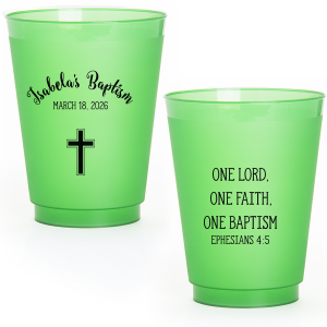 Zoom Show guides Loading product One Baptism Cup 12-oz. Frosted Cup Design ID: 1342298 Click on swatch to see options Choose Your Screen Print Active Color Metallic Cup Ink Metallic Cup Ink Silver Ink Gold Ink Copper Ink Matte Cup Ink Matte Cup Ink Matte Chocolate Ink Matte Black Ink Matte Slate Gray Ink Matte White Ink Matte Sunflower Ink Matte Moss Green Ink Matte Sage Ink Matte Leaf Ink Matte Spruce Matte Teal/Peacock Ink Matte Sky Blue Ink Matte French Blue Ink Matte Royal Blue Ink Matte Navy Ink Matte Cobalt Ink Matte Lavender Ink Matte Ballet Pink Ink Matte Fuchsia Ink Matte Lipstick Red Ink Matte Merlot Ink Matte Tangerine Ink Personalize Your Text Line 1 Line 2 Personalize further with different fonts, graphics, positioning, and sizes. (Optional) Customize More Choose Your Quantity Subtotal PRICE INCLUDES: Select a Proof Option: Print As Is I confirm that I have reviewed my design and I understand it will be produced as shown and no proof will be provided. Digital Proof + $15 I would like an expert FYP designer to look at my design, make minor corrections if necessary, and send me a black and white proof before the order is produced. Orders delivered as soon as 12.19.2025. Exclusions apply. Share Your Design About This Design Celebrate your special occasion with our personalized party cup, perfect for baptisms or other Christian gatherings. This elegant cup is designed with a prominent cross graphic, symbolizing faith and spirituality. Featuring room for name and date personalization, this cup creates a memorable keepsake for guests. Product Details Product Details Minimum order of 50 Measures 4.25" tall and 3.25" wide at the top Holds 11.10 oz flush fill volume Perfect for mixed drinks and signature cocktails BPA-free and recyclable Shatterproof and top-rack dishwasher safe Bulk discounts available Expedited shipping options available. Product Description Product Description Frost flex cups from For Your Party are a perfect accessory for any event, from weddings to birthdays. Their translucent plastic complements any drink or color scheme, and can have any art you can imagine. They’re also reusable, so your guests can have a keepsake from your special day. Like our 10 oz. frost flex cups, our 12 oz. frost flex cups are made in the USA, BPA free, and can be hand-washed again and again to remember your event. Our 12 oz. size has the same shape as our 10 oz. size, and is perfect for when you want just a little more space. It has a flush fill volume of 11.1 oz. Product Options 12-oz. Frosted Cup 14-oz.Frosted Cup 16oz Frost Flex Color 8oz Paper Cup 12oz Paper Cup 16oz Paper Cup Related Products 12-oz. Frosted Cup 14-oz.Frosted Cup 16oz Frost Flex Color 8oz Paper Cup 12oz Paper Cup 16oz Paper Cup