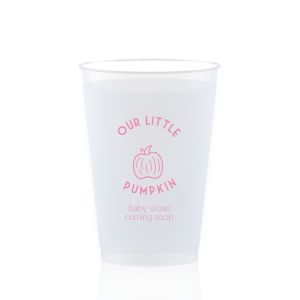 Zoom Show guides Loading product Our Little Pumpkin Cup 10-oz.Frosted Cup Design ID: 381048 Click on swatch to see options Choose Your Screen Print Active Color Metallic Cup Ink Metallic Cup Ink Silver Ink Gold Ink Copper Ink Matte Cup Ink Matte Cup Ink Matte Chocolate Ink Matte Black Ink Matte Slate Gray Ink Matte White Ink Matte Sunflower Ink Matte Moss Green Ink Matte Sage Ink Matte Leaf Ink Matte Spruce Matte Teal/Peacock Ink Matte Sky Blue Ink Matte French Blue Ink Matte Royal Blue Ink Matte Navy Ink Matte Cobalt Ink Matte Lavender Ink Matte Ballet Pink Ink Matte Fuchsia Ink Matte Lipstick Red Ink Matte Merlot Ink Matte Tangerine Ink Personalize Your Text Line 1 Personalize further with different fonts, graphics, positioning, and sizes. (Optional) Customize More Choose Your Quantity Subtotal PRICE INCLUDES: Select a Proof Option: Print As Is I confirm that I have reviewed my design and I understand it will be produced as shown and no proof will be provided. Digital Proof + $15 I would like an expert FYP designer to look at my design, make minor corrections if necessary, and send me a black and white proof before the order is produced. Orders delivered as soon as 11.06.2025. Exclusions apply. Share Your Design About This Design Our Our Little Pumpkin Cup are essential for pumpkin-themed parties. Ideal for fall baby showers, these custom cups featuring a charming pumpkin graphic will ensure you and your guests celebrate in style. Product Details Product Details Minimum order of 50 Measures 3.75" tall and 3" wide at the top Holds 9.56 oz flush fill volume Perfect for wine and signature drinks BPA-free and recyclable Shatterproof and top-rack dishwasher safe Bulk discounts available Expedited shipping options available. Product Description Product Description Custom printed frost flex cups from For Your Party are a classic standby for any event, from weddings to birthdays. Their translucent plastic complements any drink or decor, and are reusable, so your guests can have a keepsake from your special day. Like our 9 oz. frost flex cups, our 10 oz. frost flex cups are made in the USA, BPA free, and can be hand-washed again and again to remember your event. Our 10 oz. size is taller and narrower than our 9 oz, great for wine or drinks on the rocks, and has a flush fill volume of 9.6 oz. Product Options 10-oz.Frosted Cup 12-oz. Frosted Cup 14-oz.Frosted Cup 16-oz. Frosted Cup Related Products 10-oz.Frosted Cup 12-oz. Frosted Cup 14-oz.Frosted Cup 16-oz. Frosted Cup