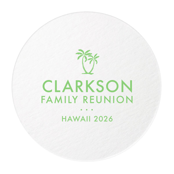 Zoom Show guides Loading product Palm Tree Reunion Coaster Diamond 4" Coaster Design ID: 220182 Click on swatch to see options Choose Your Product Color Active Color Coaster Colors Coaster Colors Black White Eggshell Choose Your Imprint Foil Color Active Color Shiny Foil Shiny Foil Metallic, lustrous finish. *Specialty patterned foil may vary on final print Shiny Champagne Shiny Sterling Silver Shiny 18 Kt Gold Shiny Kiwi / Lime Shiny Leaf Shiny Jade Shiny Royal Blue Shiny Amethyst Shiny Fuchsia Shiny Rose Quartz Shiny Rose Gold NEW Shiny Merlot Shiny Convertible Red Shiny Poppy Shiny Copper *Shiny Holographic Gold *Shiny Holographic Silver *Shiny Rainbow Matte Foil Matte Foil Flat finish. Matte NEW Chocolate Matte Black Matte Slate Gray Matte Dove Grey Matte White Matte Ivory Matte Mimosa Yellow Matte Sunflower Matte Key Lime Matte Leaf Matte Spruce Matte Teal/Peacock Matte Azure Matte Royal Blue Matte Navy Matte Amethyst Matte Pastel Pink Matte Ballet Pink Matte Fuchsia Matte Lipstick Red Matte Merlot Matte Tangerine Satin Foil Satin Foil Muted sheen, brushed finish. Satin Sterling Silver Satin 18 Kt. Gold Satin Copper Penny Satin Fuchsia Satin Lipstick Red Satin Leaf Satin Teal / Peacock Satin French Blue Satin Plum Personalize Your Text Line 1 Line 2 Line 3 Personalize further with different fonts, graphics, positioning, and sizes. (Optional) Customize More Choose Your Quantity Subtotal PRICE INCLUDES: Select a Proof Option: Print As Is I confirm that I have reviewed my design and I understand it will be produced as shown and no proof will be provided. Digital Proof + $15 I would like an expert FYP designer to look at my design, make minor corrections if necessary, and send me a black and white proof before the order is produced. Orders delivered as soon as 12.19.2025. Exclusions apply. Share Your Design About This Design Capture the essence of paradise with the Palm Tree Reunion Coaster. Featuring two palm trees swaying in the breeze, this design brings the islands, ocean, and sandy shores to your celebration. Perfect for any event under the sun! Product Details Product Details Minimum order of 50 Measures 4" square Made from reusable uncoated pulp board Bulk discounts available Expedited shipping options available. Product Description Product Description Custom Square Coasters are the perfect choice to elevate your event's ambiance while protecting your surfaces in style. These customizable coasters are a versatile addition to weddings, anniversary parties, cocktail soirées, and more. They not only shield your furniture but also serve as chic décor pieces that impress your guests. Crafted from pulp board, our Square Coasters exude premium quality, featuring a smooth texture that adds a touch of elegance to any setting and are made for multiple uses. Their square shape provides ample space for glasses and mugs of all sizes, ensuring convenience during your event. Personalize these coasters with your unique design or event details, making them a memorable keepsake for your guests. Explore our other barware. Product Options Diamond 4" Coaster Round Coaster Hexagon Coaster Deco Rotated Related Products Diamond 4" Coaster Round Coaster Hexagon Coaster Deco Rotated Material Pulp Board