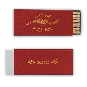 Zoom Show guides Loading product Peony Garden Floral Name Wedding Match Classic Matchbox Design ID: 4558 Click on swatch to see options Choose Your Paper Color Active Color Linen Linen Slightly textured, matte finish. Double-sided color. 100lb+ cover stock. Linen Convertible Red Linen Black Linen Slate Linen Antique Gray Linen White Linen Eggshell Linen Ivory Linen Pearl Cream Linen Navy Blue Shiny Shiny Smooth, high-gloss finish. Single-sided color. 100lb+ cover stock. Shiny Black Shiny White Shiny Navy Blue Shiny Fuchsia Shiny Convertible Red Stardream Stardream European Stardream with iridescent finish. Double-sided color. 105lb+ cover stock. Stardream NEW Black Stardream Galvanized Silver Stardream Silver Stardream Crystal White Stardream Ivory Stardream 18k Gold Stardream Champagne Stardream Old Gold Stardream Super Gold Stardream Orange Stardream Rose Gold Stardream Blush Stardream Ballet Pink Stardream Plum Stardream Violet Stardream Lavender Stardream Denim Stardream NEW Peacock Stardream Robin's Egg Blue Poptone Poptone Soft felt texture with matte finish. Double-sided color. 100lb+ cover stock. Poptone Ballet Pink Poptone NEW Fuchsia Poptone Convertible Red Poptone Tangerine Poptone Sunflower Poptone Yellow Poptone Mimosa Poptone Mint Poptone Robin’s Egg Blue Poptone Dark Turquoise Poptone Sky Blue Poptone NEW French Blue Poptone Lavender Natural Natural Smooth, matte finish. Double-sided color. 100lb+ cover stock. Natural NEW Sand Natural Khaki Natural NEW Kraft Natural Mushroom Natural NEW Chocolate Natural Black Natural Slate Natural Gray Natural Smoke Natural NEW Frost White Natural Ivory Natural Leaf Natural Spruce Natural Olive Natural Dark Teal Natural NEW Amethyst Natural Scarlet Natural Antique Rose Natural Harvest Natural Dark Sage Textured Textured Variety of textures. Single-sided color. 110lb+ cover stock. Oak Wood Walnut Wood Ebony Wood Ash Wood Birch Wood Leather Like Tan Leather Like Black Leather Like Pearl Leather Like White Leather Like Night Blue Leather Like Lipstick Red Horizontal White Patterned* - Premium Product Patterned* - Premium Product Smooth, matte finish. Single-sided pattern with white back. Pattern and color may vary between products. 100 lb paper. Premium pricing applies. Marble Sand Marble Gray Marble Navy Marble Taupe Marble Blush Watercolor Seaglass Watercolor Ocean Watercolor Night Fall Watercolor Sangria Watercolor Hibiscus Watercolor Rose Watercolor Sunrise Leaf Sand Leaf Fern Leaf Rain Leaf Rose Blank Stock Blank Stock Blank Stock Glitter* - Premium Product Glitter* - Premium Product Sparkly with a slightly textured finish. Single-sided with a white back and 100lb+ cover stock. Premium pricing applies. Glitter NEW Black Glitter NEW Silver Glitter Champagne Glitter Rose Copper Glitter Night Fall Choose Your Imprint Foil Color Active Color Shiny Foil Shiny Foil Metallic, lustrous finish. *Specialty patterned foil may vary on final print Shiny Champagne Shiny Sterling Silver Shiny 18 Kt Gold Shiny Kiwi / Lime Shiny Leaf Shiny Jade Shiny Royal Blue Shiny Amethyst Shiny Fuchsia Shiny Rose Quartz Shiny Rose Gold NEW Shiny Merlot Shiny Convertible Red Shiny Poppy Shiny Copper *Shiny Holographic Gold *Shiny Holographic Silver *Shiny Rainbow Matte Foil Matte Foil Flat finish. Matte NEW Chocolate Matte Black Matte Slate Gray Matte Dove Grey Matte White Matte Ivory Matte Mimosa Yellow Matte Sunflower Matte Key Lime Matte Leaf Matte Spruce Matte Teal/Peacock Matte Azure Matte Royal Blue Matte Navy Matte Amethyst Matte Pastel Pink Matte Ballet Pink Matte Fuchsia Matte Lipstick Red Matte Merlot Matte Tangerine Satin Foil Satin Foil Muted sheen, brushed finish. Satin Sterling Silver Satin 18 Kt. Gold Satin Copper Penny Satin Fuchsia Satin Lipstick Red Satin Leaf Satin Teal / Peacock Satin French Blue Satin Plum Personalize Your Text Line 1 Line 2 Line 3 Personalize further with different fonts, graphics, positioning, and sizes. (Optional) Customize More Choose Your Quantity Subtotal PRICE INCLUDES: Select a Proof Option: Print As Is I confirm that I have reviewed my design and I understand it will be produced as shown and no proof will be provided. Digital Proof + $15 I would like an expert FYP designer to look at my design, make minor corrections if necessary, and send me a black and white proof before the order is produced. Orders delivered as soon as 12.17.2025. Exclusions apply. Share Your Design About This Design The Peony Garden Floral Name Wedding Match marries elegance with botanical beauty. The front gracefully showcases the couple's names in all caps, arched above and below a central flourish featuring a detailed Peony, symbolizing a happy marriage. The back, adorned with the date and flanked by delicate boughs, completes this refined design. Product Details Product Details Minimum order of 50 Measures 2.22" wide by 1.375" long by 0.46" high Includes approximately 19 matchsticks Expedited shipping options available. Product Description Product Description Our classic matchboxes are the perfect addition to your birthday, wedding, or any other event. A bowl of custom matchboxes is the perfect way to make an impression as a home decor accent or party favor. Your friends and guests will be impressed with your attention to detail!Like our square matchboxes, our classic matchboxes feature a sliding tray for the matches inside a durable cardboard case that’s covered in a paper of your choice. They’re long-lasting, reliable, and can be used with any one of our wide variety of paper colors. Product Options Classic Matchbox Tiffany Candle Box Horizontal Square Matchbox Horizontal Related Products Classic Matchbox Tiffany Candle Box Horizontal Square Matchbox Horizontal