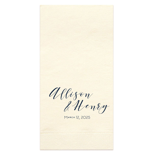 Zoom Show guides Loading product Playful Script Names Napkin Square Cocktail Napkin Design ID: 270313 Click on swatch to see options Choose Your Product Color Active Color 3 ply 3 ply Top quality 3 ply. Dyed tissue. Sand Black Slate Platinum Platinum Pin Dot Dove Gray Dove Gray Borderless White White Borderless White Pin Dot White Scallop Ivory Ivory Borderless Mimosa Lemon Pin Dot Kiwi Kiwi Pin Dot Leaf Pin Dot Spruce Pin Dot Olive Pin Dot Light Navy Dark Turquoise Pin Dot Turquoise Powder Blue Pin Dot Lavender Lavender Pin Dot Purple Merlot Fuchsia Candy Pink Antique Pink Pin Dot Ballet Pink Ballet Pink Borderless Convertible Red Light Coral Merlot Pin Dot Out Until: 2025-12-03 Tangerine Out Until: 2025-11-29 Linen Like* - Premium Product Linen Like* - Premium Product Absorbent. Dyed tissue. Airlaid. Premium pricing applies. Pebble Kraft Metallic Copper Ash Grey Brown Black Charcoal Stone Gray Metallic Silver Fog White Cream Buttercream Metallic Gold Lemon Moss Green Hunter Green Pastel Green Lime Eucalyptus Dark Turquoise Bright Sky Powder Blue Navy Out Until: 2025-12-01 Lavender Berry Merlot Magenta Pink Pastel Pink Lipstick Red Terracotta Peach Mango Ivory Out Until: 2025-12-03 Olive Green Out Until: 2025-12-04 Plum Out Until: 2025-11-13 Crosshatch* - Premium Product Crosshatch* - Premium Product Absorbent. Printed tissue. Airlaid. Premium pricing applies. Crosshatch Black Crosshatch Gray Crosshatch Stone Crosshatch Turquoise Crosshatch Violet Crosshatch Fuchsia Crosshatch Lipstick Red Crosshatch Key Lime Out Until: 2025-11-26 Crosshatch Green Out Until: 2025-12-03 Crosshatch Navy Out Until: 2025-11-24 Woven* - Premium Product Woven* - Premium Product Basketweave texture. Single-sided color. Premium pricing applies. Woven Sand Woven Copper Woven Black Woven Slate Woven Silver Woven Stone Woven Vanilla Woven White Woven Gold Woven Sage Woven Spruce Woven Powder Blue Woven Navy Woven Mauve Woven Convertible Red Woven Tumeric Patterned* - Premium Product Patterned* - Premium Product Exclusive FYP patterns. Single-sided color. Pindot embossed edge. Product pricing applies. Oak Wood Walnut Wood Ebony Wood Ash Wood Birch Wood Marble Sand Marble Gray Marble Navy Marble Taupe Marble Blush Ombre Black Ombre Navy Ombre Robin’s Egg Blue Ombre Rose Petal Ombre Coral Watercolor Sea Glass Watercolor Ocean Watercolor Nightfall Watercolor Sangria Watercolor Hibiscus Watercolor Rose Watercolor Sunrise Leaf Sand Leaf Fern Leaf Rain Leaf Rose Tie Dye Sunflower Tie Dye Leaf Tie Dye Turquoise Tie Dye Fuchsia Shimmer* - Premium Product Shimmer* - Premium Product Elegant European Stardream with iridescent finish. Single-sided color. Pindot embossed edge. Premium pricing applies. Champagne Soft Black Galvanized Silver Crystal White Ivory Pearl Gold Sage Navy Amethyst Herringbone* - Premium Product Herringbone* - Premium Product Absorbent. Printed Herringbone pattern. Airlaid. Premium pricing applies. Herringbone Vanilla Mocha Herringbone Gray Onyx Choose Your Imprint Foil Color Active Color Shiny Foil Shiny Foil Metallic, lustrous finish. *Specialty patterned foil may vary on final print Shiny Champagne Shiny Sterling Silver Shiny 18 Kt Gold Shiny Kiwi / Lime Shiny Leaf Shiny Jade Shiny Royal Blue Shiny Amethyst Shiny Fuchsia Shiny Rose Quartz Shiny Rose Gold NEW Shiny Merlot Shiny Convertible Red Shiny Poppy Shiny Copper *Shiny Holographic Gold *Shiny Holographic Silver *Shiny Rainbow Matte Foil Matte Foil Flat finish. Matte NEW Chocolate Matte Black Matte Slate Gray Matte Dove Grey Matte White Matte Ivory Matte Mimosa Yellow Matte Sunflower Matte Key Lime Matte Leaf Matte Spruce Matte Teal/Peacock Matte Azure Matte Royal Blue Matte Navy Matte Amethyst Matte Pastel Pink Matte Ballet Pink Matte Fuchsia Matte Lipstick Red Matte Merlot Matte Tangerine Satin Foil Satin Foil Muted sheen, brushed finish. Satin Sterling Silver Satin 18 Kt. Gold Satin Copper Penny Satin Fuchsia Satin Lipstick Red Satin Leaf Satin Teal / Peacock Satin French Blue Satin Plum Personalize Your Text Line 1 Line 2 Line 3 Personalize further with different fonts, graphics, positioning, and sizes. (Optional) Customize More Choose Your Quantity Subtotal PRICE INCLUDES: Select a Proof Option: Print As Is I confirm that I have reviewed my design and I understand it will be produced as shown and no proof will be provided. Digital Proof + $15 I would like an expert FYP designer to look at my design, make minor corrections if necessary, and send me a black and white proof before the order is produced. Orders delivered as soon as 11.14.2025. Exclusions apply. Share Your Design About This Design Relax into the joy of the occasion with the Playful Script Names Napkin. The couple's names are charmingly presented in a playful, casual script, capturing an artistic vibe. Below, the event date in smaller block letters adds a neat touch, making this design effortlessly stylish and perfectly approachable. Product Details Product Details Classic 3-ply tissue, 4.75” or 5” square Colors vary Signature foil stamp included Bulk discounts available Expedited shipping options available. Product Description Product Description Classic Cocktail Napkins are the perfect companion for any event. Add a touch of refinement to your cocktail parties, weddings, or birthday celebrations. Whether you're sipping a Martini, Old Fashioned, or a signature cocktail, these beverage napkins are the perfect accompaniment to elevate your drink service to new heights.Traditionally designed with a classic pleated edge, highly absorbent, durable, crafted from high-quality, premium-grade paper, our Classic Cocktail Napkins are an excellent, timeless choice. They are soft to the touch, keeping your guests' hands dry and your furniture protected. Once used, simply discard them, making cleanup a breeze. Explore our Cocktail Napkins Collection to find the perfect option for your event. Due to the complexities of manufacturing, the size of the embossed border on our 3-ply napkins may