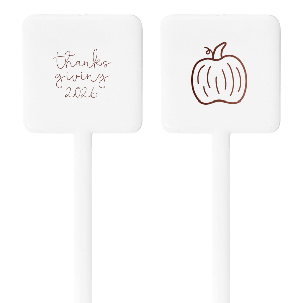 Our custom Matte Chocolate Round Stir Stick with Matte Chocolate Foil has a Pumpkin graphic and is good for use in Thanksgiving, Halloween themed parties and will give your party the personalized touch every host desires.