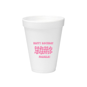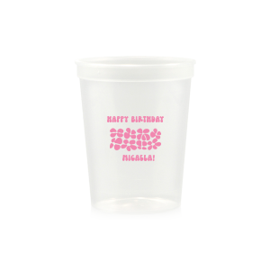 Zoom Show guides Loading product Retro Floral Groove Cup 12-oz. Frosted Cup Design ID: 2813547 Click on swatch to see options Choose Your Screen Print Active Color Metallic Cup Ink Metallic Cup Ink Silver Ink Gold Ink Copper Ink Matte Cup Ink Matte Cup Ink Matte Chocolate Ink Matte Black Ink Matte Slate Gray Ink Matte White Ink Matte Sunflower Ink Matte Moss Green Ink Matte Sage Ink Matte Leaf Ink Matte Spruce Matte Teal/Peacock Ink Matte Sky Blue Ink Matte French Blue Ink Matte Royal Blue Ink Matte Navy Ink Matte Cobalt Ink Matte Lavender Ink Matte Ballet Pink Ink Matte Fuchsia Ink Matte Lipstick Red Ink Matte Merlot Ink Matte Tangerine Ink Personalize Your Text Line 1 Line 2 Personalize further with different fonts, graphics, positioning, and sizes. (Optional) Customize More Choose Your Quantity Subtotal PRICE INCLUDES: Select a Proof Option: Print As Is I confirm that I have reviewed my design and I understand it will be produced as shown and no proof will be provided. Digital Proof + $15 I would like an expert FYP designer to look at my design, make minor corrections if necessary, and send me a black and white proof before the order is produced. Orders delivered as soon as 11.06.2025. Exclusions apply. Share Your Design About This Design Turn back time at your birthday party with the Retro Floral Groove Cup, personalized with your name in a funky, retro-inspired font, and decked out with a groovy '70s floral pattern. A hip and nostalgic way to raise a toast on your special day. Product Details Product Details Minimum order of 50 Measures 4.25" tall and 3.25" wide at the top Holds 11.10 oz flush fill volume Perfect for mixed drinks and signature cocktails BPA-free and recyclable Shatterproof and top-rack dishwasher safe Bulk discounts available Expedited shipping options available. Product Description Product Description Frost flex cups from For Your Party are a perfect accessory for any event, from weddings to birthdays. Their translucent plastic complements any drink or color scheme, and can have any art you can imagine. They’re also reusable, so your guests can have a keepsake from your special day. Like our 10 oz. frost flex cups, our 12 oz. frost flex cups are made in the USA, BPA free, and can be hand-washed again and again to remember your event. Our 12 oz. size has the same shape as our 10 oz. size, and is perfect for when you want just a little more space. It has a flush fill volume of 11.1 oz. Product Options 12-oz. Frosted Cup 14-oz.Frosted Cup 16-oz. Frosted Cup 20-oz. Frosted Cup 24-oz. Frosted Cup 10-oz.Frosted Cup 9-oz. Frosted Cup 5-oz. Frosted Cup 16-oz. Color Changing Cup 12-oz. Stadium Cup 16-oz.Stadium Cup 22-oz. Stadium Cup 32-oz. Stadium Cup 12-oz. Styrofoam Cup 16-oz. Styrofoam Cup 20-oz. Styrofoam Cup 24-oz. Styrofoam Cup 32-oz. Styrofoam Cup Plastic Shot Glass 8oz Paper Cup 12oz Paper Cup 16oz Paper Cup 8oz Paper Cup 12oz Paper Cup 16oz Paper Cup 20oz Paper Cup Related Products 12-oz. Frosted Cup 14-oz.Frosted Cup 16-oz. Frosted Cup 20-oz. Frosted Cup 24-oz. Frosted Cup 10-oz.Frosted Cup 9-oz. Frosted Cup 5-oz. Frosted Cup 16-oz. Color Changing Cup 12-oz. Stadium Cup 16-oz.Stadium Cup 22-oz. Stadium Cup 32-oz. Stadium Cup 12-oz. Styrofoam Cup 16-oz. Styrofoam Cup 20-oz. Styrofoam Cup 24-oz. Styrofoam Cup 32-oz. Styrofoam Cup Plastic Shot Glass 8oz Paper Cup 12oz Paper Cup 16oz Paper Cup 8oz Paper Cup 12oz Paper Cup 16oz Paper Cup 20oz Paper Cup