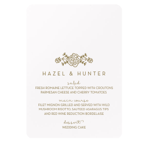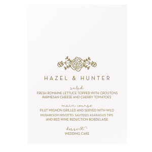 Zoom Show guides Loading product Rose Accent Menu Menu 5"x7" Design ID: 9586 Click on swatch to see options Choose Your Paper Color Active Color Linen Linen Slightly textured, matte finish. Double-sided color. 100lb+ cover stock. Linen Convertible Red Linen Black Linen Slate Linen Antique Gray Linen White Linen Eggshell Linen Ivory Linen Pearl Cream Linen Navy Blue Shiny Shiny Smooth, high-gloss finish. Single-sided color. 100lb+ cover stock. Shiny Black Shiny White Shiny Navy Blue Shiny Fuchsia Shiny Convertible Red Stardream Stardream European Stardream with iridescent finish. Double-sided color. 105lb+ cover stock. Stardream NEW Black Stardream Galvanized Silver Stardream Silver Stardream Crystal White Stardream Ivory Stardream 18k Gold Stardream Champagne Stardream Old Gold Stardream Super Gold Stardream Orange Stardream Rose Gold Stardream Blush Stardream Ballet Pink Stardream Plum Stardream Violet Stardream Lavender Stardream Denim Stardream NEW Peacock Stardream Robin's Egg Blue Poptone Poptone Soft felt texture with matte finish. Double-sided color. 100lb+ cover stock. Poptone Ballet Pink Poptone NEW Fuchsia Poptone Convertible Red Poptone Tangerine Poptone Sunflower Poptone Yellow Poptone Mimosa Poptone Mint Poptone Robin’s Egg Blue Poptone Dark Turquoise Poptone Sky Blue Poptone NEW French Blue Poptone Lavender Natural Natural Smooth, matte finish. Double-sided color. 100lb+ cover stock. Natural NEW Sand Natural Spruce Natural Khaki Natural NEW Kraft Natural Mushroom Natural NEW Chocolate Natural Black Natural Slate Natural Clay Gray Natural Gray Natural Smoke Natural NEW Frost White Natural Ivory Natural Leaf Natural Dark Teal Natural NEW Amethyst Natural Scarlet Natural Antique Rose Natural Harvest Natural Dark Sage Textured Textured Variety of textures. Single-sided color. 110lb+ cover stock. Oak Wood Walnut Wood Ebony Wood Ash Wood Birch Wood Leather Like Tan Leather Like Black Leather Like Pearl Leather Like White Leather Like Night Blue Leather Like Lipstick Red Horizontal White Patterned* - Premium Product Patterned* - Premium Product Smooth, matte finish. Single-sided pattern with white back. Pattern and color may vary between products. 100 lb paper. Premium pricing applies. Marble Sand Marble Gray Marble Navy Marble Taupe Marble Blush Watercolor Seaglass Watercolor Ocean Watercolor Night Fall Watercolor Sangria Watercolor Hibiscus Watercolor Rose Watercolor Sunrise Leaf Sand Leaf Fern Leaf Rain Leaf Rose Blank Stock Blank Stock Blank Stock Glitter* - Premium Product Glitter* - Premium Product Sparkly with a slightly textured finish. Single-sided with a white back and 100lb+ cover stock. Premium pricing applies. Glitter NEW Black Glitter NEW Silver Glitter Champagne Glitter Rose Copper Glitter Night Fall Choose Your Imprint Foil Color Active Color Shiny Foil Shiny Foil Metallic, lustrous finish. *Specialty patterned foil may vary on final print Shiny Champagne Shiny Sterling Silver Shiny 18 Kt Gold Shiny Kiwi / Lime Shiny Leaf Shiny Jade Shiny Royal Blue Shiny Amethyst Shiny Fuchsia Shiny Rose Quartz Shiny Rose Gold NEW Shiny Merlot Shiny Convertible Red Shiny Poppy Shiny Copper *Shiny Holographic Gold *Shiny Holographic Silver *Shiny Rainbow Matte Foil Matte Foil Flat finish. Matte NEW Chocolate Matte Black Matte Slate Gray Matte Dove Grey Matte White Matte Ivory Matte Mimosa Yellow Matte Sunflower Matte Key Lime Matte Leaf Matte Spruce Matte Teal/Peacock Matte Azure Matte Royal Blue Matte Navy Matte Amethyst Matte Pastel Pink Matte Ballet Pink Matte Fuchsia Matte Lipstick Red Matte Merlot Matte Tangerine Satin Foil Satin Foil Muted sheen, brushed finish. Satin Sterling Silver Satin 18 Kt. Gold Satin Copper Penny Satin Fuchsia Satin Lipstick Red Satin Leaf Satin Teal / Peacock Satin French Blue Satin Plum Personalize Your Text Line 1 Line 2 Line 3 Line 4 Line 5 Line 6 Line 7 Line 8 Line 9 Line 10 Personalize further with different fonts, graphics, positioning, and sizes. (Optional) Customize More Choose Your Quantity Subtotal PRICE INCLUDES: Select a Proof Option: Print As Is I confirm that I have reviewed my design and I understand it will be produced as shown and no proof will be provided. Digital Proof + $15 I would like an expert FYP designer to look at my design, make minor corrections if necessary, and send me a black and white proof before the order is produced. Orders delivered as soon as 11.06.2025. Exclusions apply. Share Your Design About This Design Product Details Product Details Minimum order of 25 Measures 5" wide by 7" high Signature foil stamp included Bulk discounts available Expedited shipping options available. Product Description Product Description Our Custom Classic Menu 4.75" x 6.75" is the perfect addition to elevate your party experience! Tailored to your unique theme, this customizable menu adds a touch of elegance and personalization to your celebrations. Whether it's a lavish wedding reception, a milestone birthday bash, or a corporate gala, our Classic Menu enhances the aesthetic of your event. Choose from a wide range of designs and fonts to create a menu that perfectly complements your style. Explore our customizable options at For Your Party to make your event truly unforgettable. Crafted with the utmost quality and attention to detail, our Classic Menu boasts a premium texture that exudes sophistication. Printed on durable, high-grade paper, it withstands the test of time while maintaining its pristine look. With its compact size, it's both convenient to handle and easy to display, ensuring a seamless experience for both hosts and guests. The Classic Menu not only adds an air of refinement to your event but also serves as a functional piece that guides your guests through the culinary journey you've prepared. Elevate your event planning with this exquisite touch. Create your own custom Classic Menu today and discover the joy of adding a personal flair to your special occasions. Product Options Menu 5"x7" Rounded Corner Menu 5"x7" Cir