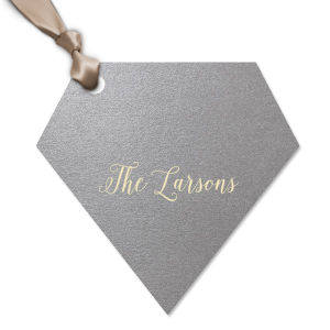 Zoom Show guides Loading product Script Last Name Tag Diamond Gift Tag Design ID: 1383149 Click on swatch to see options Choose Your Paper Color Active Color Linen Linen Slightly textured, matte finish. Double-sided color. 100lb+ cover stock. Linen Convertible Red Linen Black Linen Slate Linen Antique Gray Linen White Linen Eggshell Linen Ivory Linen Pearl Cream Linen Navy Blue Shiny Shiny Smooth, high-gloss finish. Single-sided color. 100lb+ cover stock. Shiny Black Shiny White Shiny Navy Blue Shiny Fuchsia Shiny Convertible Red Stardream Stardream European Stardream with iridescent finish. Double-sided color. 105lb+ cover stock. Stardream NEW Black Stardream Galvanized Silver Stardream Silver Stardream Crystal White Stardream Ivory Stardream 18k Gold Stardream Champagne Stardream Old Gold Stardream Super Gold Stardream Orange Stardream Rose Gold Stardream Blush Stardream Ballet Pink Stardream Plum Stardream Violet Stardream Lavender Stardream Denim Stardream NEW Peacock Stardream Robin's Egg Blue Poptone Poptone Soft felt texture with matte finish. Double-sided color. 100lb+ cover stock. Poptone Ballet Pink Poptone NEW Fuchsia Poptone Convertible Red Poptone Tangerine Poptone Sunflower Poptone Yellow Poptone Mimosa Poptone Mint Poptone Robin’s Egg Blue Poptone Dark Turquoise Poptone Sky Blue Poptone NEW French Blue Poptone Lavender Natural Natural Smooth, matte finish. Double-sided color. 100lb+ cover stock. Natural NEW Sand Natural Spruce Natural Khaki Natural NEW Kraft Natural Mushroom Natural NEW Chocolate Natural Black Natural Slate Natural Clay Gray Natural Gray Natural Smoke Natural NEW Frost White Natural Ivory Natural Leaf Natural Dark Teal Natural NEW Amethyst Natural Scarlet Natural Antique Rose Natural Harvest Natural Dark Sage Textured Textured Variety of textures. Single-sided color. 110lb+ cover stock. Oak Wood Walnut Wood Ebony Wood Ash Wood Birch Wood Leather Like Tan Leather Like Black Leather Like Pearl Leather Like White Leather Like Night Blue Leather Like Lipstick Red Horizontal White Patterned* - Premium Product Patterned* - Premium Product Smooth, matte finish. Single-sided pattern with white back. Pattern and color may vary between products. 100 lb paper. Premium pricing applies. Marble Sand Marble Gray Marble Navy Marble Taupe Marble Blush Watercolor Seaglass Watercolor Ocean Watercolor Night Fall Watercolor Sangria Watercolor Hibiscus Watercolor Rose Watercolor Sunrise Leaf Sand Leaf Fern Leaf Rain Leaf Rose Blank Stock Blank Stock Blank Stock Glitter* - Premium Product Glitter* - Premium Product Sparkly with a slightly textured finish. Single-sided with a white back and 100lb+ cover stock. Premium pricing applies. Glitter NEW Black Glitter NEW Silver Glitter Champagne Glitter Rose Copper Glitter Night Fall Choose Your Imprint Foil Color Active Color Shiny Foil Shiny Foil Metallic, lustrous finish. *Specialty patterned foil may vary on final print Shiny Champagne Shiny Sterling Silver Shiny 18 Kt Gold Shiny Kiwi / Lime Shiny Leaf Shiny Jade Shiny Royal Blue Shiny Amethyst Shiny Fuchsia Shiny Rose Quartz Shiny Rose Gold NEW Shiny Merlot Shiny Convertible Red Shiny Poppy Shiny Copper *Shiny Holographic Gold *Shiny Holographic Silver *Shiny Rainbow Matte Foil Matte Foil Flat finish. Matte NEW Chocolate Matte Black Matte Slate Gray Matte Dove Grey Matte White Matte Ivory Matte Mimosa Yellow Matte Sunflower Matte Key Lime Matte Leaf Matte Spruce Matte Teal/Peacock Matte Azure Matte Royal Blue Matte Navy Matte Amethyst Matte Pastel Pink Matte Ballet Pink Matte Fuchsia Matte Lipstick Red Matte Merlot Matte Tangerine Satin Foil Satin Foil Muted sheen, brushed finish. Satin Sterling Silver Satin 18 Kt. Gold Satin Copper Penny Satin Fuchsia Satin Lipstick Red Satin Leaf Satin Teal / Peacock Satin French Blue Satin Plum Choose Your Ribbon Color Active Color Ribbons - Additional Charge Ribbons - Additional Charge Champagne Copper Brownie Espresso Black Slate Sterling Silver White Ivory Pearl Gold Mimosa Sunflower Kiwi Leaf Forest Olive Pistachio Green Tea Peacock Robin’s Egg Blue Turquoise Dark Turquoise Navy Royal Blue Glacier Blue Lavender Violet Cranberry Merlot Candy Pink Ballet Pink Rose Petal Fuchsia Brick Convertible Red Tangerine None Gold Out Until: 2025-10-30 Sky Blue Out Until: 2025-11-28 Amethyst Out Until: 2025-11-28 Plum Out Until: 2025-11-28 Coral Out Until: 2025-11-12 Personalize Your Text Line 1 Personalize further with different fonts, graphics, positioning, and sizes. (Optional) Customize More Choose Your Quantity Subtotal PRICE INCLUDES: Select a Proof Option: Print As Is I confirm that I have reviewed my design and I understand it will be produced as shown and no proof will be provided. Digital Proof + $15 I would like an expert FYP designer to look at my design, make minor corrections if necessary, and send me a black and white proof before the order is produced. Orders delivered as soon as 11.06.2025. Exclusions apply. Share Your Design About This Design The ever-popular Stardream Galvanized Silver Diamond Gift Tag with Matte Ivory Foil couldn't be more perfect. It's time to show off your impeccable taste. Product Details Product Details 25 minimum 2.75" w X 2.75" h Volume discounts Expedited options available Product Description Product Description Elevate your gifting with our diamond-shaped gift tags. Whether you’re sending a wedding gift, using tags for your bridesmaid proposals, or doing your holiday gifting, our foil-stamped tags add the perfect touch. Crafted with meticulous attention to detail, this tag adds a touch of elegance and charm to any present. The unique diamond design creates a captivating focal point, ensuring your gift or proposal stands out. Made from high-quality paper and offered in an assortment of colors, it's the perfect finishing touch for those who appreciate the finer things. Make your gesture truly memorable with our diamond-shaped gift tag. Satin ribbon is also available for purchase. Product Options Diamond Gif