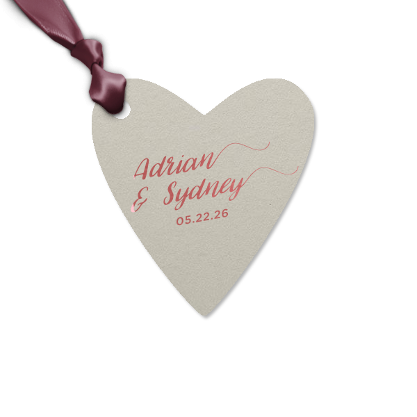 Zoom Show guides Loading product Script Names Wave Gift Tag Large Heart Gift Tag Design ID: 659262 Click on swatch to see options Choose Your Paper Color Active Color Linen Linen Slightly textured, matte finish. Double-sided color. 100lb+ cover stock. Linen Convertible Red Linen Black Linen Slate Linen Antique Gray Linen White Linen Eggshell Linen Ivory Linen Pearl Cream Linen Navy Blue Shiny Shiny Smooth, high-gloss finish. Single-sided color. 100lb+ cover stock. Shiny Black Shiny White Shiny Navy Blue Shiny Fuchsia Shiny Convertible Red Stardream Stardream European Stardream with iridescent finish. Double-sided color. 105lb+ cover stock. Stardream NEW Black Stardream Galvanized Silver Stardream Silver Stardream Crystal White Stardream Ivory Stardream 18k Gold Stardream Champagne Stardream Old Gold Stardream Super Gold Stardream Orange Stardream Rose Gold Stardream Blush Stardream Ballet Pink Stardream Plum Stardream Violet Stardream Lavender Stardream Denim Stardream NEW Peacock Stardream Robin's Egg Blue Poptone Poptone Soft felt texture with matte finish. Double-sided color. 100lb+ cover stock. Poptone Ballet Pink Poptone NEW Fuchsia Poptone Convertible Red Poptone Tangerine Poptone Sunflower Poptone Yellow Poptone Mimosa Poptone Mint Poptone Robin’s Egg Blue Poptone Dark Turquoise Poptone Sky Blue Poptone NEW French Blue Poptone Lavender Natural Natural Smooth, matte finish. Double-sided color. 100lb+ cover stock. Natural NEW Sand Natural Khaki Natural NEW Kraft Natural Mushroom Natural NEW Chocolate Natural Black Natural Slate Natural Gray Natural Smoke Natural NEW Frost White Natural Ivory Natural Leaf Natural Spruce Natural Olive Natural Dark Teal Natural NEW Amethyst Natural Scarlet Natural Antique Rose Natural Harvest Natural Dark Sage Textured Textured Variety of textures. Single-sided color. 110lb+ cover stock. Oak Wood Walnut Wood Ebony Wood Ash Wood Birch Wood Leather Like Tan Leather Like Black Leather Like Pearl Leather Like White Leather Like Night Blue Leather Like Lipstick Red Horizontal White Patterned* - Premium Product Patterned* - Premium Product Smooth, matte finish. Single-sided pattern with white back. Pattern and color may vary between products. 100 lb paper. Premium pricing applies. Marble Sand Marble Gray Marble Navy Marble Taupe Marble Blush Watercolor Seaglass Watercolor Ocean Watercolor Night Fall Watercolor Sangria Watercolor Hibiscus Watercolor Rose Watercolor Sunrise Leaf Sand Leaf Fern Leaf Rain Leaf Rose Blank Stock Blank Stock Blank Stock Glitter* - Premium Product Glitter* - Premium Product Sparkly with a slightly textured finish. Single-sided with a white back and 100lb+ cover stock. Premium pricing applies. Glitter NEW Black Glitter NEW Silver Glitter Champagne Glitter Rose Copper Glitter Night Fall Choose Your Imprint Foil Color Active Color Shiny Foil Shiny Foil Metallic, lustrous finish. *Specialty patterned foil may vary on final print Shiny Champagne Shiny Sterling Silver Shiny 18 Kt Gold Shiny Kiwi / Lime Shiny Leaf Shiny Jade Shiny Royal Blue Shiny Amethyst Shiny Fuchsia Shiny Rose Quartz Shiny Rose Gold NEW Shiny Merlot Shiny Convertible Red Shiny Poppy Shiny Copper *Shiny Holographic Gold *Shiny Holographic Silver *Shiny Rainbow Matte Foil Matte Foil Flat finish. Matte NEW Chocolate Matte Black Matte Slate Gray Matte Dove Grey Matte White Matte Ivory Matte Mimosa Yellow Matte Sunflower Matte Key Lime Matte Leaf Matte Spruce Matte Teal/Peacock Matte Azure Matte Royal Blue Matte Navy Matte Amethyst Matte Pastel Pink Matte Ballet Pink Matte Fuchsia Matte Lipstick Red Matte Merlot Matte Tangerine Satin Foil Satin Foil Muted sheen, brushed finish. Satin Sterling Silver Satin 18 Kt. Gold Satin Copper Penny Satin Fuchsia Satin Lipstick Red Satin Leaf Satin Teal / Peacock Satin French Blue Satin Plum Choose Your Ribbon Color Active Color Ribbons - Additional Charge Ribbons - Additional Charge Copper Black Slate Sterling Silver White Ivory Pearl Gold Mimosa Forest Olive Pistachio Green Tea Peacock Robin’s Egg Blue Turquoise Dark Turquoise Navy Royal Blue Glacier Blue Sky Blue Violet Amethyst Cranberry Merlot Plum Candy Pink Ballet Pink Rose Petal Brick Convertible Red None Champagne Out Until: 2025-12-26 Brownie Out Until: 2025-12-18 Espresso Out Until: 2026-01-05 Sunflower Out Until: 2026-01-04 Gold Out Until: 2026-01-07 Kiwi Out Until: 2026-01-04 Leaf Out Until: 2025-12-24 Lavender Out Until: 2026-01-04 Fuchsia Out Until: 2026-01-06 Tangerine Out Until: 2026-01-06 Coral Out Until: 2026-01-06 Personalize Your Text Line 1 Line 2 Line 3 Personalize further with different fonts, graphics, positioning, and sizes. (Optional) Customize More Choose Your Quantity Subtotal PRICE INCLUDES: Select a Proof Option: Print As Is I confirm that I have reviewed my design and I understand it will be produced as shown and no proof will be provided. Digital Proof + $15 I would like an expert FYP designer to look at my design, make minor corrections if necessary, and send me a black and white proof before the order is produced. Orders delivered as soon as 12.19.2025. Exclusions apply. Share Your Design About This Design Our custom Natural Gray Large Heart Gift Tag with Shiny Rose Quartz Foil will look fabulous with your unique touch. Your guests will agree! Product Details Product Details Minimum order of 25 Measures 2.75" wide by 2.9" high Bulk discounts available Expedited shipping options available. Product Description Product Description Spread the love with our Large Trendy Heart Gift Tag, a perfect addition to your party favors. Delight your guests with both the heartfelt sentiment and the stylish touch it brings. Our foil-stamped heart-shaped tag is perfect for Valentine’s Day, wedding favors, or anything in between! Embrace the art of customization today. Select from our array of templates below to kickstart your journey, or let your imagination take the lead and design your very own creation. Elevate your party favors with a touch of personalization th