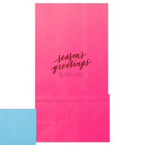 Zoom Show guides Loading product Season’s Greetings Holiday Gift Bag Popcorn Bag Design ID: 241976 Click on swatch to see options Choose Your Product Color Active Color Bag Colors Bag Colors Kraft Brown Black White Yellow Lime Purple Red Choose Your Imprint Foil Color Active Color Shiny Foil Shiny Foil Metallic, lustrous finish. *Specialty patterned foil may vary on final print Shiny Champagne Shiny Sterling Silver Shiny 18 Kt Gold Shiny Kiwi / Lime Shiny Leaf Shiny Jade Shiny Royal Blue Shiny Amethyst Shiny Fuchsia Shiny Rose Quartz Shiny Rose Gold NEW Shiny Merlot Shiny Convertible Red Shiny Poppy Shiny Copper *Shiny Holographic Gold *Shiny Holographic Silver *Shiny Rainbow Matte Foil Matte Foil Flat finish. Matte NEW Chocolate Matte Black Matte Slate Gray Matte Dove Grey Matte White Matte Ivory Matte Mimosa Yellow Matte Sunflower Matte Key Lime Matte Leaf Matte Spruce Matte Teal/Peacock Matte Azure Matte Royal Blue Matte Navy Matte Amethyst Matte Pastel Pink Matte Ballet Pink Matte Fuchsia Matte Lipstick Red Matte Merlot Matte Tangerine Satin Foil Satin Foil Muted sheen, brushed finish. Satin Sterling Silver Satin 18 Kt. Gold Satin Copper Penny Satin Fuchsia Satin Lipstick Red Satin Leaf Satin Teal / Peacock Satin French Blue Satin Plum Choose Your Tissue Color Active Color Tissue Paper Tissue Paper Turquoise 10 sheets Lavender 10 sheets Pink 8 sheets Red 8 sheets None Brown 10 sheets Out Until: 2025-12-01 Black 10 sheets Out Until: 2025-12-01 Ivory 10 sheets Out Until: 2025-12-01 Royal Blue 10 sheets Out Until: 2025-12-01 Light Blue 10 sheets Out Until: 2025-12-01 Fuchsia 10 sheets Out Until: 2025-12-01 Personalize Your Text Line 1 Personalize further with different fonts, graphics, positioning, and sizes. (Optional) Customize More Choose Your Quantity Subtotal PRICE INCLUDES: Select a Proof Option: Print As Is I confirm that I have reviewed my design and I understand it will be produced as shown and no proof will be provided. Digital Proof + $15 I would like an expert FYP designer to look at my design, make minor corrections if necessary, and send me a black and white proof before the order is produced. Orders delivered as soon as 12.04.2025. Exclusions apply. Share Your Design About This Design Wrap your presents in the spirit of the season with the Season’s Greetings Holiday Gift Bag, featuring 'season’s greetings' in a gentle script. Below, your family name personalizes this festive carrier, extending a hand of holiday joy with every gift given Product Details Product Details Minimum order of 25 Measures 4.25" wide by 8" high by 2.25" deep Gusseted design Bulk discounts available Expedited shipping options availa Product Description Product Description Our Personalized Popcorn Bags are the perfect way to serve up smiles at your next gathering! Elevate your event with these customized bags, adding a personal touch that delights guests and makes every moment memorable. Whether it's a movie night, wedding, or carnival-themed celebration, these popcorn bags are a fantastic addition to the fun. Crafted with impeccable quality, our Personalized Popcorn Bags offer a delightful texture and durability that ensures they hold up to every kernel. Their convenient design makes them easy to carry and share, adding an extra layer of enjoyment to your festivities. Choose from a variety of vibrant colors and designs to perfectly match your event's theme. Elevate your event with our Personalized Popcorn Bags – a tasteful way to make your party pop! Explore our other favor bags. Product Options Popcorn Bag Large Cellophane Bag Small Cellophane Bag Cookie Bag Gloss Goodie Bag Lunch Bag Related Products Popcorn Bag Large Cellophane Bag Small Cellophane Bag Cookie Bag Gloss Goodie Bag Lunch Bag