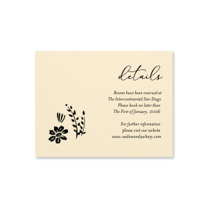 Zoom Show guides Loading product Something Blue Details Card A2 Details Horizontal Design ID: 852677 Click on swatch to see options Choose Your Paper Color Active Color Letterpress Paper 110lb Letterpress Paper 110lb Crane Lettra Paper. 100% cotton. 110 lb. Lettra Pearl White 110lb Letterpress Paper 220lb* - Premium Product Letterpress Paper 220lb* - Premium Product Crane Lettra Paper. 100% cotton. 220 lb. Premium pricing applies. Lettra Pearl White Choose Your Letterpress Active Color Letterpress Inks Letterpress Inks Platinum Black Hot Pink Chocolate Ivy Mint Violet Slate Mint Light Coral Lipstick Red Navy Liberty Blue Teal/Peacock Mustard Gold Personalize Your Text Line 1 Line 2 Line 3 Personalize further with different fonts, graphics, positioning, and sizes. (Optional) Customize More Choose Your Quantity Subtotal PRICE INCLUDES: Select a Proof Option: Print As Is I confirm that I have reviewed my design and I understand it will be produced as shown and no proof will be provided. Digital Proof + $15 I would like an expert FYP designer to look at my design, make minor corrections if necessary, and send me a black and white proof before the order is produced. Orders delivered as soon as 01.21.2026. Exclusions apply. Share Your Design About This Design Custom Lettra Pearl White Letterpress Details Card with Royal Blue Ink Letterpress Inks are a must-have for your next event—whatever the celebration! Product Details Product Details Crane Lettra Paper 100% Cotton Letterpress Printing Product Description Product Description Our exquisite Custom Letterpressed Details Cards are the perfect choice for adding a touch of elegance to your celebrations. Elevate your event's aesthetic with these meticulously crafted cards, suitable for weddings, birthdays, corporate gatherings, and more. Choosing these cards means opting for unparalleled sophistication and capturing the essence of your occasion. Whether it's a grand wedding reception or an intimate birthday soirée, these Details Cards are the ideal accompaniment to make your event truly unforgettable. Immerse yourself in the world of premium quality and texture with our Custom Letterpressed Details Cards. Meticulously designed and printed with intricate details, these cards boast a luxurious feel that exudes opulence. Their durable construction ensures they'll withstand the test of time, becoming cherished keepsakes for you and your guests. The convenient customization process allows you to tailor each card to match your theme, color scheme, and event details effortlessly. With our Custom Letterpressed Details Cards, you're not only investing in unmatched quality but also in convenience, as they effortlessly blend with any decor or setting. Elevate your event and leave a lasting impression with these sophisticated cards. Product Options A2 Details Horizontal A2 Details Horizontal Related Products A2 Details Horizontal A2 Details Horizontal