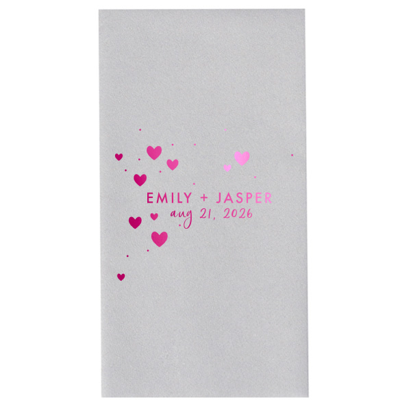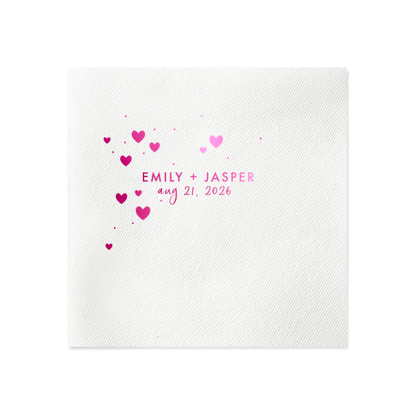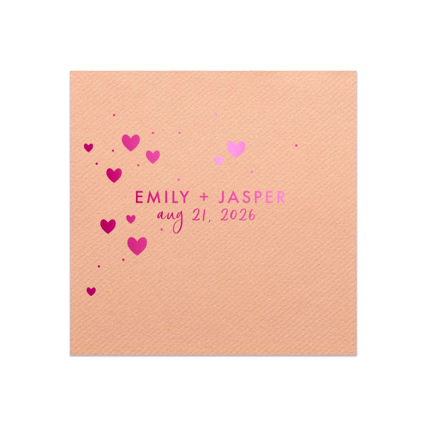 Zoom Show guides Loading product Square Cocktail Napkin Square Cocktail Napkin Design ID: 506433 Click on swatch to see options Choose Your Product Color Active Color 3 ply 3 ply Top quality 3 ply. Dyed tissue. Sand Black Slate Platinum Platinum Pin Dot Dove Gray Dove Gray Borderless White White Borderless White Pin Dot White Scallop Ivory Ivory Borderless Mimosa Lemon Pin Dot Kiwi Kiwi Pin Dot Leaf Pin Dot Spruce Pin Dot Olive Pin Dot Light Navy Dark Turquoise Pin Dot Turquoise Powder Blue Pin Dot Lavender Lavender Pin Dot Purple Merlot Pin Dot Candy Pink Antique Pink Pin Dot Ballet Pink Ballet Pink Borderless Convertible Red Light Coral Merlot Out Until: 2025-12-22 Fuchsia Out Until: 2026-01-05 Linen Like* - Premium Product Linen Like* - Premium Product Absorbent. Dyed tissue. Airlaid. Premium pricing applies. Pebble Kraft Ash Grey Black Charcoal Stone Gray Metallic Silver Fog White Cream Buttercream Lemon Moss Green Hunter Green Pastel Green Lime Eucalyptus Dark Turquoise Bright Sky Powder Blue Navy Lavender Magenta Pink Pastel Pink Terracotta Peach Mango Metallic Copper Out Until: 2026-01-08 Brown Out Until: 2025-12-26 Ivory Out Until: 2026-01-02 Metallic Gold Out Until: 2025-12-24 Olive Green Out Until: 2025-12-26 Berry Out Until: 2025-12-28 Merlot Out Until: 2025-12-25 Lipstick Red Out Until: 2025-12-19 Crosshatch* - Premium Product Crosshatch* - Premium Product Absorbent. Printed tissue. Airlaid. Premium pricing applies. Crosshatch Black Crosshatch Gray Crosshatch Green Crosshatch Turquoise Crosshatch Violet Crosshatch Lipstick Red Crosshatch Stone Out Until: 2025-12-15 Crosshatch Key Lime Out Until: 2026-01-01 Crosshatch Navy Out Until: 2026-01-01 Crosshatch Fuchsia Out Until: 2025-12-27 Woven* - Premium Product Woven* - Premium Product Basketweave texture. Single-sided color. Premium pricing applies. Woven Sand Woven Copper Woven Black Woven Slate Woven Silver Woven Stone Woven Vanilla Woven White Woven Gold Woven Sage Woven Spruce Woven Powder Blue Woven Navy Woven Mauve Woven Convertible Red Woven Tumeric Patterned* - Premium Product Patterned* - Premium Product Exclusive FYP patterns. Single-sided color. Pindot embossed edge. Product pricing applies. Oak Wood Walnut Wood Ebony Wood Ash Wood Birch Wood Marble Sand Marble Gray Marble Navy Marble Taupe Marble Blush Ombre Black Ombre Navy Ombre Robin’s Egg Blue Ombre Rose Petal Ombre Coral Watercolor Sea Glass Watercolor Ocean Watercolor Nightfall Watercolor Sangria Watercolor Hibiscus Watercolor Rose Watercolor Sunrise Leaf Sand Leaf Fern Leaf Rain Leaf Rose Tie Dye Sunflower Tie Dye Leaf Tie Dye Turquoise Tie Dye Fuchsia Shimmer* - Premium Product Shimmer* - Premium Product Elegant European Stardream with iridescent finish. Single-sided color. Pindot embossed edge. Premium pricing applies. Champagne Soft Black Galvanized Silver Crystal White Ivory Pearl Gold Sage Navy Amethyst Herringbone* - Premium Product Herringbone* - Premium Product Absorbent. Printed Herringbone pattern. Airlaid. Premium pricing applies. Herringbone Vanilla Mocha Herringbone Gray Onyx Choose Your Imprint Foil Color Active Color Shiny Foil Shiny Foil Metallic, lustrous finish. *Specialty patterned foil may vary on final print Shiny Champagne Shiny Sterling Silver Shiny 18 Kt Gold Shiny Kiwi / Lime Shiny Leaf Shiny Jade Shiny Royal Blue Shiny Amethyst Shiny Fuchsia Shiny Rose Quartz Shiny Rose Gold NEW Shiny Merlot Shiny Convertible Red Shiny Poppy Shiny Copper *Shiny Holographic Gold *Shiny Holographic Silver *Shiny Rainbow Matte Foil Matte Foil Flat finish. Matte NEW Chocolate Matte Black Matte Slate Gray Matte Dove Grey Matte White Matte Ivory Matte Mimosa Yellow Matte Sunflower Matte Key Lime Matte Leaf Matte Spruce Matte Teal/Peacock Matte Azure Matte Royal Blue Matte Navy Matte Amethyst Matte Pastel Pink Matte Ballet Pink Matte Fuchsia Matte Lipstick Red Matte Merlot Matte Tangerine Satin Foil Satin Foil Muted sheen, brushed finish. Satin Sterling Silver Satin 18 Kt. Gold Satin Copper Penny Satin Fuchsia Satin Lipstick Red Satin Leaf Satin Teal / Peacock Satin French Blue Satin Plum Personalize Your Text Line 1 Line 2 Personalize further with different fonts, graphics, positioning, and sizes. (Optional) Customize More Choose Your Quantity Subtotal PRICE INCLUDES: Select a Proof Option: Print As Is I confirm that I have reviewed my design and I understand it will be produced as shown and no proof will be provided. Digital Proof + $15 I would like an expert FYP designer to look at my design, make minor corrections if necessary, and send me a black and white proof before the order is produced. Orders delivered as soon as 12.16.2025. Exclusions apply. Share Your Design About This Design ForYourParty's elegant Peach Cocktail Napkin with Shiny Fuchsia Foil has a Hearts in Sky graphic and is good for use in Full Bleed, Hearts themed parties and couldn't be more perfect. It's time to show off your impeccable taste. Product Details Product Details Classic 3-ply tissue, 4.75” or 5” square Colors vary Signature foil stamp included Bulk discounts available Expedited shipping options available. Product Description Product Description Classic Cocktail Napkins are the perfect companion for any event. Add a touch of refinement to your cocktail parties, weddings, or birthday celebrations. Whether you're sipping a Martini, Old Fashioned, or a signature cocktail, these beverage napkins are the perfect accompaniment to elevate your drink service to new heights.Traditionally designed with a classic pleated edge, highly absorbent, durable, crafted from high-quality, premium-grade paper, our Classic Cocktail Napkins are an excellent, timeless choice. They are soft to the touch, keeping your guests' hands dry and your furniture protected. Once used, simply discard them, making cleanup a breeze. Explore our Cocktail Napkins Collection to find the perfect option for your event. Due to the complexities of manufacturing, the size of the embossed border on our 3-ply napkins