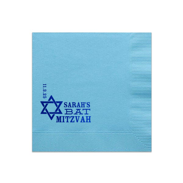 Zoom Show guides Loading product Star Of David Bat Mitzvah Napkin Square Cocktail Napkin Design ID: 6861 Click on swatch to see options Choose Your Product Color Active Color 3 ply 3 ply Top quality 3 ply. Dyed tissue. Sand Black Slate Platinum Platinum Pin Dot Dove Gray Dove Gray Borderless White White Borderless White Pin Dot White Scallop Ivory Ivory Borderless Mimosa Lemon Pin Dot Kiwi Kiwi Pin Dot Leaf Pin Dot Spruce Pin Dot Olive Pin Dot Light Navy Dark Turquoise Pin Dot Turquoise Powder Blue Pin Dot Lavender Lavender Pin Dot Purple Merlot Pin Dot Fuchsia Candy Pink Antique Pink Pin Dot Ballet Pink Ballet Pink Borderless Convertible Red Light Coral Merlot Out Until: 2025-11-29 Tangerine Out Until: 2025-11-29 Linen Like* - Premium Product Linen Like* - Premium Product Absorbent. Dyed tissue. Airlaid. Premium pricing applies. Pebble Kraft Metallic Copper Ash Grey Black Charcoal Stone Gray Metallic Silver Fog White Ivory Cream Buttercream Metallic Gold Lemon Moss Green Olive Green Hunter Green Pastel Green Lime Eucalyptus Dark Turquoise Bright Sky Powder Blue Navy Lavender Berry Merlot Magenta Pink Pastel Pink Lipstick Red Terracotta Peach Mango Brown Out Until: 2025-11-21 Plum Out Until: 2025-11-13 Crosshatch* - Premium Product Crosshatch* - Premium Product Absorbent. Printed tissue. Airlaid. Premium pricing applies. Crosshatch Black Crosshatch Gray Crosshatch Stone Crosshatch Turquoise Crosshatch Violet Crosshatch Fuchsia Crosshatch Lipstick Red Crosshatch Key Lime Out Until: 2025-11-26 Crosshatch Green Out Until: 2025-11-29 Crosshatch Navy Out Until: 2025-11-24 Woven* - Premium Product Woven* - Premium Product Basketweave texture. Single-sided color. Premium pricing applies. Woven Sand Woven Copper Woven Black Woven Slate Woven Silver Woven Stone Woven Vanilla Woven White Woven Gold Woven Sage Woven Spruce Woven Powder Blue Woven Navy Woven Mauve Woven Convertible Red Woven Tumeric Patterned* - Premium Product Patterned* - Premium Product Exclusive FYP patterns. Single-sided color. Pindot embossed edge. Product pricing applies. Oak Wood Walnut Wood Ebony Wood Ash Wood Birch Wood Marble Sand Marble Gray Marble Navy Marble Taupe Marble Blush Ombre Black Ombre Navy Ombre Robin’s Egg Blue Ombre Rose Petal Ombre Coral Watercolor Sea Glass Watercolor Ocean Watercolor Nightfall Watercolor Sangria Watercolor Hibiscus Watercolor Rose Watercolor Sunrise Leaf Sand Leaf Fern Leaf Rain Leaf Rose Tie Dye Sunflower Tie Dye Leaf Tie Dye Turquoise Tie Dye Fuchsia Shimmer* - Premium Product Shimmer* - Premium Product Elegant European Stardream with iridescent finish. Single-sided color. Pindot embossed edge. Premium pricing applies. Champagne Soft Black Galvanized Silver Crystal White Ivory Pearl Gold Sage Navy Amethyst Herringbone* - Premium Product Herringbone* - Premium Product Absorbent. Printed Herringbone pattern. Airlaid. Premium pricing applies. Herringbone Vanilla Mocha Herringbone Gray Onyx Choose Your Imprint Foil Color Active Color Shiny Foil Shiny Foil Metallic, lustrous finish. *Specialty patterned foil may vary on final print Shiny Champagne Shiny Sterling Silver Shiny 18 Kt Gold Shiny Kiwi / Lime Shiny Leaf Shiny Jade Shiny Royal Blue Shiny Amethyst Shiny Fuchsia Shiny Rose Quartz Shiny Rose Gold NEW Shiny Merlot Shiny Convertible Red Shiny Poppy Shiny Copper *Shiny Holographic Gold *Shiny Holographic Silver *Shiny Rainbow Matte Foil Matte Foil Flat finish. Matte NEW Chocolate Matte Black Matte Slate Gray Matte Dove Grey Matte White Matte Ivory Matte Mimosa Yellow Matte Sunflower Matte Key Lime Matte Leaf Matte Spruce Matte Teal/Peacock Matte Azure Matte Royal Blue Matte Navy Matte Amethyst Matte Pastel Pink Matte Ballet Pink Matte Fuchsia Matte Lipstick Red Matte Merlot Matte Tangerine Satin Foil Satin Foil Muted sheen, brushed finish. Satin Sterling Silver Satin 18 Kt. Gold Satin Copper Penny Satin Fuchsia Satin Lipstick Red Satin Leaf Satin Teal / Peacock Satin French Blue Satin Plum Personalize Your Text Line 1 Line 2 Personalize further with different fonts, graphics, positioning, and sizes. (Optional) Customize More Choose Your Quantity Subtotal PRICE INCLUDES: Select a Proof Option: Print As Is I confirm that I have reviewed my design and I understand it will be produced as shown and no proof will be provided. Digital Proof + $15 I would like an expert FYP designer to look at my design, make minor corrections if necessary, and send me a black and white proof before the order is produced. Orders delivered as soon as 11.06.2025. Exclusions apply. Share Your Design About This Design Mazel Tov to the Bat Mitzvah on her milestone moment! The Star of David Bat Mitzvah Napkin elegantly displays the celebrant's name and special date beside the Star of David. A symbolic and traditional design for this coming of age ceremony. Product Details Product Details Classic 3-ply tissue, 4.75” or 5” square Colors vary Signature foil stamp included Bulk discounts available Expedited shipping options available. Product Description Product Description Classic Cocktail Napkins are the perfect companion for any event. Add a touch of refinement to your cocktail parties, weddings, or birthday celebrations. Whether you're sipping a Martini, Old Fashioned, or a signature cocktail, these beverage napkins are the perfect accompaniment to elevate your drink service to new heights.Traditionally designed with a classic pleated edge, highly absorbent, durable, crafted from high-quality, premium-grade paper, our Classic Cocktail Napkins are an excellent, timeless choice. They are soft to the touch, keeping your guests' hands dry and your furniture protected. Once used, simply discard them, making cleanup a breeze. Explore our Cocktail Napkins Collection to find the perfect option for your event. Due to the complexities of manufacturing, the size of the embossed border on our 3-ply napkins may vary slightly. These discrepancies are a natural part of the manufacturing process and do not impact the overall q
