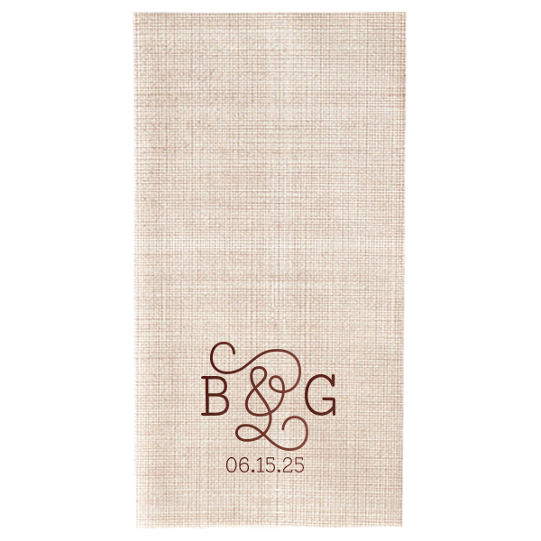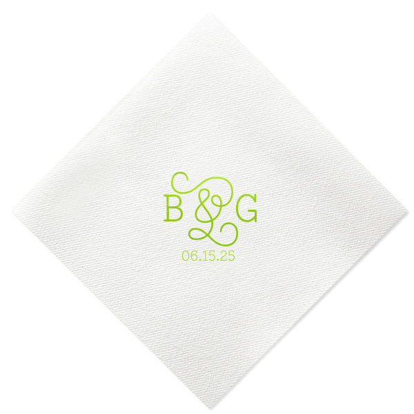 Zoom Show guides Loading product Swirl Initials Napkin Diamond Linen Like Cocktail Napkin Design ID: 557398 Click on swatch to see options Choose Your Napkin Color Active Color Linen Like* - Premium Product Linen Like* - Premium Product Absorbent. Dyed tissue. Airlaid. Premium pricing applies. Pebble Kraft Ash Grey Black Charcoal Stone Gray Fog White Cream Buttercream Ivory Lemon Moss Green Olive Green Hunter Green Pastel Green Lime Eucalyptus Dark Turquoise Bright Sky Powder Blue Navy Lavender Berry Merlot Magenta Pastel Pink Pink Lipstick Red Terracotta Peach Mango Metallic Silver Metallic Gold Metallic Copper Brown Out Until: 2025-11-21 Plum Out Until: 2025-11-13 Crosshatch* - Premium Product Crosshatch* - Premium Product Absorbent. Printed tissue. Airlaid. Premium pricing applies. Crosshatch Black Crosshatch Gray Crosshatch Stone Crosshatch Green Crosshatch Turquoise Crosshatch Violet Crosshatch Fuchsia Crosshatch Lipstick Red Crosshatch Key Lime Out Until: 2025-11-26 Crosshatch Navy Out Until: 2025-11-24 Herringbone* - Premium Product Herringbone* - Premium Product Absorbent. Printed Herringbone pattern. Airlaid. Premium pricing applies. Herringbone Vanilla Mocha Herringbone Gray Onyx Choose Your Imprint Foil Color Active Color Shiny Foil Shiny Foil Metallic, lustrous finish. *Specialty patterned foil may vary on final print Shiny Champagne Shiny Sterling Silver Shiny 18 Kt Gold Shiny Kiwi / Lime Shiny Leaf Shiny Jade Shiny Royal Blue Shiny Amethyst Shiny Fuchsia Shiny Rose Quartz Shiny Rose Gold NEW Shiny Merlot Shiny Convertible Red Shiny Poppy Shiny Copper *Shiny Holographic Gold *Shiny Holographic Silver *Shiny Rainbow Matte Foil Matte Foil Flat finish. Matte NEW Chocolate Matte Black Matte Slate Gray Matte Dove Grey Matte White Matte Ivory Matte Mimosa Yellow Matte Sunflower Matte Key Lime Matte Leaf Matte Spruce Matte Teal/Peacock Matte Azure Matte Royal Blue Matte Navy Matte Amethyst Matte Pastel Pink Matte Ballet Pink Matte Fuchsia Matte Lipstick Red Matte Merlot Matte Tangerine Satin Foil Satin Foil Muted sheen, brushed finish. Satin Sterling Silver Satin 18 Kt. Gold Satin Copper Penny Satin Fuchsia Satin Lipstick Red Satin Leaf Satin Teal / Peacock Satin French Blue Satin Plum Personalize Your Text Line 1 Line 2 Line 3 Personalize further with different fonts, graphics, positioning, and sizes. (Optional) Customize More Choose Your Quantity Subtotal PRICE INCLUDES: Select a Proof Option: Print As Is I confirm that I have reviewed my design and I understand it will be produced as shown and no proof will be provided. Digital Proof + $15 I would like an expert FYP designer to look at my design, make minor corrections if necessary, and send me a black and white proof before the order is produced. Orders delivered as soon as 11.04.2025. Exclusions apply. Share Your Design About This Design Personalized Moss Green Linen Like Cocktail Napkin with Matte White Foil will look fabulous with your unique touch. Your guests will agree! Product Details Product Details Deluxe air laid paper Measures approximately 5" x 5" Signature foil stamp included Bulk discounts available Expedited shipping options available. Product Description Product Description Introducing our custom Linen-Like Cocktail Napkins, the epitome of elegance and refinement for your sophisticated gatherings. Whether you're hosting a formal wedding reception or a chic cocktail soirée, these linen cocktail napkins effortlessly complement any table setting. Their soft and gentle touch will leave a lasting impression on guests, showcasing your commitment to providing a truly upscale experience. Meticulously crafted, these napkins exude the luxurious look and feel of fine linen while offering the convenience of being disposable. Crafted from premium-quality materials, they are highly absorbent and the same dimensions as our classic cocktail napkins. With the perfect blend of functionality and elegance, you can elevate any upscale bar or lounge. Product Options Diamond Linen Like Cocktail Napkin Paper Guest Towel Diamond Luncheon Napkin Related Products Diamond Linen Like Cocktail Napkin Paper Guest Towel Diamond Luncheon Napkin