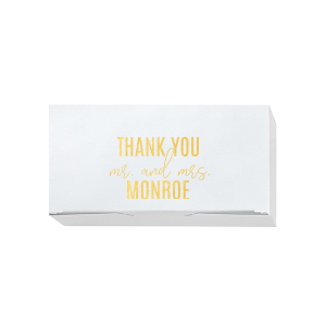 Zoom Show guides Loading product Thank You Mr and Mrs Box Tote Bag Box Design ID: 2263969 Click on swatch to see options Choose Your Product Color Active Color Natural Natural White Choose Your Imprint Foil Color Active Color Shiny Foil Shiny Foil Metallic, lustrous finish. *Specialty patterned foil may vary on final print Shiny Champagne Shiny Sterling Silver Shiny 18 Kt Gold Shiny Kiwi / Lime Shiny Leaf Shiny Jade Shiny Royal Blue Shiny Amethyst Shiny Fuchsia Shiny Rose Quartz Shiny Rose Gold NEW Shiny Merlot Shiny Convertible Red Shiny Poppy Shiny Copper *Shiny Holographic Gold *Shiny Holographic Silver *Shiny Rainbow Matte Foil Matte Foil Flat finish. Matte NEW Chocolate Matte Black Matte Slate Gray Matte Dove Grey Matte White Matte Ivory Matte Mimosa Yellow Matte Sunflower Matte Key Lime Matte Leaf Matte Spruce Matte Teal/Peacock Matte Azure Matte Royal Blue Matte Navy Matte Amethyst Matte Pastel Pink Matte Ballet Pink Matte Fuchsia Matte Lipstick Red Matte Merlot Matte Tangerine Satin Foil Satin Foil Muted sheen, brushed finish. Satin Sterling Silver Satin 18 Kt. Gold Satin Copper Penny Satin Fuchsia Satin Lipstick Red Satin Leaf Satin Teal / Peacock Satin French Blue Satin Plum Choose Your Tissue Color Active Color Tissue Paper Tissue Paper Red 8 sheets Turquoise 10 sheets Lavender 10 sheets Pink 8 sheets None Royal Blue 10 sheets Out Until: 2025-11-27 Ivory 10 sheets Out Until: 2025-10-30 Fuchsia 10 sheets Out Until: 2025-10-30 Light Blue 10 sheets Out Until: 2025-10-30 Black 10 sheets Out Until: 2025-10-29 Brown 10 sheets Out Until: 2025-10-30 Personalize Your Text Line 1 Personalize further with different fonts, graphics, positioning, and sizes. (Optional) Customize More Choose Your Quantity Subtotal PRICE INCLUDES: Select a Proof Option: Print As Is I confirm that I have reviewed my design and I understand it will be produced as shown and no proof will be provided. Digital Proof + $15 I would like an expert FYP designer to look at my design, make minor corrections if necessary, and send me a black and white proof before the order is produced. Orders delivered as soon as 11.05.2025. Exclusions apply. Share Your Design About This Design Custom Matte Black Cake Box with Matte Black Foil can be personalized to match your party's exact theme and tempo. Product Details Product Details Minimum order of 50 Measures 3.5" by 1.75" by 5" Expedited shipping options available. Product Description Product Description Our Custom Tote Bag Boxes, the ultimate choice for adding a personal and stylish touch to your event favors and gifts! When you opt for these customizable boxes from For Your Party, you're ensuring that your giveaways and presents stand out from the crowd. These versatile boxes are perfect for a wide range of occasions, including weddings, bridal showers, corporate events, and fundraisers. Designed for your convenience, they are the perfect size to add a variety of sentimental items that your guests will cherish. With a variety of design options available, you can personalize these boxes to match your event's theme or your brand's identity. Not only do they enhance the presentation of your gifts, but they also offer practicality and protection. Elevate your party planning with For Your Party's Custom Tote Bag Boxes, making your event favors and gifts truly memorable. Explore our selection of favor boxes! Product Options Tote Bag Box Cake Box Candy Box Square Gift Box Mug Gift Box Related Products Tote Bag Box Cake Box Candy Box Square Gift Box Mug Gift Box