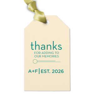 Zoom Show guides Loading product Thanks for the Memories Letterpress Gift Tag Square Gift Tag Design ID: 2142568 Click on swatch to see options Choose Your Paper Color Active Color Natural Natural Smooth, matte finish. Double-sided color. 100lb+ cover stock. Natural NEW Frost White Natural Ivory Choose Your Letterpress Inks Active Color Letterpress Inks Letterpress Inks Platinum Black Hot Pink Chocolate Ivy Mint Violet Slate Mint Light Coral Lipstick Red Navy Liberty Blue Teal/Peacock Mustard Gold Choose Your Ribbon Color Active Color Ribbons - Additional Charge Ribbons - Additional Charge Champagne Copper Brownie Black Slate Sterling Silver White Ivory Pearl Gold Mimosa Sunflower Kiwi Forest Olive Pistachio Green Tea Peacock Robin’s Egg Blue Turquoise Dark Turquoise Navy Royal Blue Glacier Blue Sky Blue Lavender Violet Amethyst Cranberry Merlot Plum Candy Pink Ballet Pink Rose Petal Brick Convertible Red None Espresso Out Until: 2026-01-05 Gold Out Until: 2026-01-07 Leaf Out Until: 2025-12-24 Fuchsia Out Until: 2026-01-06 Tangerine Out Until: 2026-01-06 Coral Out Until: 2026-01-06 Personalize Your Text Line 4A Line 4B Personalize further with different fonts, graphics, positioning, and sizes. (Optional) Customize More Choose Your Quantity Subtotal PRICE INCLUDES: Select a Proof Option: Print As Is I confirm that I have reviewed my design and I understand it will be produced as shown and no proof will be provided. Digital Proof + $15 I would like an expert FYP designer to look at my design, make minor corrections if necessary, and send me a black and white proof before the order is produced. Orders delivered as soon as 01.09.2026. Exclusions apply. Share Your Design About This Design Our personalized Linen Pearl Cream Square Gift Tag with Matte Spruce Foil Color has a Circle Flourish graphic and is good for use in Accents themed parties and couldn't be more perfect. It's time to show off your impeccable taste. Product Details Product Details 25 minimum 2.75" w X 2.75" h Volume discounts Expedited options available Product Description Product Description Embrace contemporary elegance with our Letterpress Square Gift Tags. Their modern, geometric appeal is versatile, making them a chic addition to events ranging from minimalist weddings to avant-garde art exhibits, stylish birthdays, and corporate launches. Each tag is a testament to superior craftsmanship, radiating a premium quality and tactile texture that only letterpress can deliver. Boasting durability, they stand firm, ensuring every message lasts. Designed for the discerning shopper, their convenience and avant-garde design seamlessly blend functionality with aesthetics. To complete your event's sophisticated touch, peruse our custom gift bags collection. Product Options Square Gift Tag Round Arch Gift Tag Luggage Tag Double Point Straw Tag Related Products Square Gift Tag Round Arch Gift Tag Luggage Tag Double Point Straw Tag