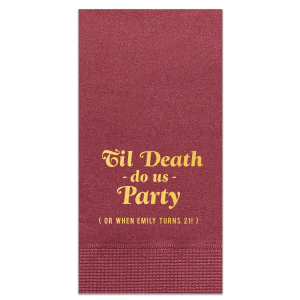 Zoom Show guides Loading product Til Death Do Us Party Napkin Square Cocktail Napkin Design ID: 407832 Click on swatch to see options Choose Your Product Color Active Color 3 ply 3 ply Top quality 3 ply. Dyed tissue. Sand Black Slate Platinum Platinum Pin Dot Dove Gray Dove Gray Borderless White White Borderless White Pin Dot White Scallop Ivory Ivory Borderless Mimosa Lemon Pin Dot Kiwi Kiwi Pin Dot Leaf Pin Dot Spruce Pin Dot Olive Pin Dot Light Navy Dark Turquoise Pin Dot Turquoise Powder Blue Pin Dot Lavender Lavender Pin Dot Purple Merlot Fuchsia Candy Pink Antique Pink Pin Dot Ballet Pink Ballet Pink Borderless Convertible Red Light Coral Merlot Pin Dot Out Until: 2025-12-03 Tangerine Out Until: 2025-11-29 Linen Like* - Premium Product Linen Like* - Premium Product Absorbent. Dyed tissue. Airlaid. Premium pricing applies. Pebble Kraft Metallic Copper Ash Grey Black Charcoal Stone Gray Metallic Silver Fog White Ivory Cream Buttercream Metallic Gold Lemon Moss Green Hunter Green Pastel Green Lime Eucalyptus Dark Turquoise Bright Sky Powder Blue Navy Out Until: 2025-12-01 Lavender Berry Merlot Magenta Pink Pastel Pink Lipstick Red Terracotta Peach Mango Brown Out Until: 2025-12-11 Olive Green Out Until: 2025-12-04 Crosshatch* - Premium Product Crosshatch* - Premium Product Absorbent. Printed tissue. Airlaid. Premium pricing applies. Crosshatch Black Crosshatch Gray Crosshatch Stone Crosshatch Turquoise Crosshatch Violet Crosshatch Fuchsia Crosshatch Lipstick Red Crosshatch Key Lime Out Until: 2025-11-26 Crosshatch Green Out Until: 2025-12-03 Crosshatch Navy Out Until: 2025-11-24 Woven* - Premium Product Woven* - Premium Product Basketweave texture. Single-sided color. Premium pricing applies. Woven Sand Woven Copper Woven Black Woven Slate Woven Silver Woven Stone Woven Vanilla Woven White Woven Gold Woven Sage Woven Spruce Woven Powder Blue Woven Navy Woven Mauve Woven Convertible Red Woven Tumeric Patterned* - Premium Product Patterned* - Premium Product Exclusive FYP patterns. Single-sided color. Pindot embossed edge. Product pricing applies. Oak Wood Walnut Wood Ebony Wood Ash Wood Birch Wood Marble Sand Marble Gray Marble Navy Marble Taupe Marble Blush Ombre Black Ombre Navy Ombre Robin’s Egg Blue Ombre Rose Petal Ombre Coral Watercolor Sea Glass Watercolor Ocean Watercolor Nightfall Watercolor Sangria Watercolor Hibiscus Watercolor Rose Watercolor Sunrise Leaf Sand Leaf Fern Leaf Rain Leaf Rose Tie Dye Sunflower Tie Dye Leaf Tie Dye Turquoise Tie Dye Fuchsia Shimmer* - Premium Product Shimmer* - Premium Product Elegant European Stardream with iridescent finish. Single-sided color. Pindot embossed edge. Premium pricing applies. Champagne Soft Black Galvanized Silver Crystal White Ivory Pearl Gold Sage Navy Amethyst Herringbone* - Premium Product Herringbone* - Premium Product Absorbent. Printed Herringbone pattern. Airlaid. Premium pricing applies. Herringbone Vanilla Mocha Herringbone Gray Onyx Choose Your Imprint Foil Color Active Color Shiny Foil Shiny Foil Metallic, lustrous finish. *Specialty patterned foil may vary on final print Shiny Champagne Shiny Sterling Silver Shiny 18 Kt Gold Shiny Kiwi / Lime Shiny Leaf Shiny Jade Shiny Royal Blue Shiny Amethyst Shiny Fuchsia Shiny Rose Quartz Shiny Rose Gold NEW Shiny Merlot Shiny Convertible Red Shiny Poppy Shiny Copper *Shiny Holographic Gold *Shiny Holographic Silver *Shiny Rainbow Matte Foil Matte Foil Flat finish. Matte NEW Chocolate Matte Black Matte Slate Gray Matte Dove Grey Matte White Matte Ivory Matte Mimosa Yellow Matte Sunflower Matte Key Lime Matte Leaf Matte Spruce Matte Teal/Peacock Matte Azure Matte Royal Blue Matte Navy Matte Amethyst Matte Pastel Pink Matte Ballet Pink Matte Fuchsia Matte Lipstick Red Matte Merlot Matte Tangerine Satin Foil Satin Foil Muted sheen, brushed finish. Satin Sterling Silver Satin 18 Kt. Gold Satin Copper Penny Satin Fuchsia Satin Lipstick Red Satin Leaf Satin Teal / Peacock Satin French Blue Satin Plum Personalize Your Text Line 1 Personalize further with different fonts, graphics, positioning, and sizes. (Optional) Customize More Choose Your Quantity Subtotal PRICE INCLUDES: Select a Proof Option: Print As Is I confirm that I have reviewed my design and I understand it will be produced as shown and no proof will be provided. Digital Proof + $15 I would like an expert FYP designer to look at my design, make minor corrections if necessary, and send me a black and white proof before the order is produced. Orders delivered as soon as 11.19.2025. Exclusions apply. Share Your Design About This Design ForYourParty's chic Merlot Cocktail Napkin with Shiny 18 Kt Gold Foil will add that special attention to detail that cannot be overlooked. Product Details Product Details Classic 3-ply tissue, 4.75” or 5” square Colors vary Signature foil stamp included Bulk discounts available Expedited shipping options available. Product Description Product Description Classic Cocktail Napkins are the perfect companion for any event. Add a touch of refinement to your cocktail parties, weddings, or birthday celebrations. Whether you're sipping a Martini, Old Fashioned, or a signature cocktail, these beverage napkins are the perfect accompaniment to elevate your drink service to new heights.Traditionally designed with a classic pleated edge, highly absorbent, durable, crafted from high-quality, premium-grade paper, our Classic Cocktail Napkins are an excellent, timeless choice. They are soft to the touch, keeping your guests' hands dry and your furniture protected. Once used, simply discard them, making cleanup a breeze. Explore our Cocktail Napkins Collection to find the perfect option for your event. Due to the complexities of manufacturing, the size of the embossed border on our 3-ply napkins may vary slightly. These discrepancies are a natural part of the manufacturing process and do not impact the overall quality or functionality of the napkins. Product Options Square Cocktail Napkin Square Luncheon