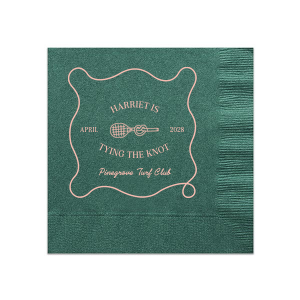 Zoom Show guides Loading product Tying The Knot Tennis Napkin Square Linen Like Cocktail Napkin Design ID: 3245828 Click on swatch to see options Choose Your Product Color Active Color Linen Like* - Premium Product Linen Like* - Premium Product Absorbent. Dyed tissue. Airlaid. Premium pricing applies. Pebble Kraft Ash Grey Black Charcoal Stone Gray Fog White Ivory Cream Buttercream Lemon Moss Green Hunter Green Pastel Green Lime Eucalyptus Dark Turquoise Bright Sky Powder Blue Navy Out Until: 2025-12-01 Lavender Berry Magenta Pink Pastel Pink Terracotta Peach Mango Metallic Silver Metallic Gold Metallic Copper Brown Out Until: 2025-12-12 Olive Green Out Until: 2025-12-19 Merlot Out Until: 2025-12-13 Lipstick Red Out Until: 2025-12-19 Crosshatch* - Premium Product Crosshatch* - Premium Product Absorbent. Printed tissue. Airlaid. Premium pricing applies. Crosshatch Black Crosshatch Gray Crosshatch Turquoise Crosshatch Violet Crosshatch Lipstick Red Crosshatch Stone Out Until: 2025-12-15 Crosshatch Key Lime Out Until: 2025-11-26 Crosshatch Green Out Until: 2025-12-03 Crosshatch Navy Out Until: 2025-11-30 Crosshatch Fuchsia Out Until: 2025-12-18 Herringbone* - Premium Product Herringbone* - Premium Product Absorbent. Printed Herringbone pattern. Airlaid. Premium pricing applies. Herringbone Vanilla Mocha Herringbone Gray Onyx Choose Your Imprint Foil Color Active Color Shiny Foil Shiny Foil Metallic, lustrous finish. *Specialty patterned foil may vary on final print Shiny Champagne Shiny Sterling Silver Shiny 18 Kt Gold Shiny Kiwi / Lime Shiny Leaf Shiny Jade Shiny Royal Blue Shiny Amethyst Shiny Fuchsia Shiny Rose Quartz Shiny Rose Gold NEW Shiny Merlot Shiny Convertible Red Shiny Poppy Shiny Copper *Shiny Holographic Gold *Shiny Holographic Silver *Shiny Rainbow Matte Foil Matte Foil Flat finish. Matte NEW Chocolate Matte Black Matte Slate Gray Matte Dove Grey Matte White Matte Ivory Matte Mimosa Yellow Matte Sunflower Matte Key Lime Matte Leaf Matte Spruce Matte Teal/Peacock Matte Azure Matte Royal Blue Matte Navy Matte Amethyst Matte Pastel Pink Matte Ballet Pink Matte Fuchsia Matte Lipstick Red Matte Merlot Matte Tangerine Satin Foil Satin Foil Muted sheen, brushed finish. Satin Sterling Silver Satin 18 Kt. Gold Satin Copper Penny Satin Fuchsia Satin Lipstick Red Satin Leaf Satin Teal / Peacock Satin French Blue Satin Plum Personalize Your Text Line 1 Line 2 Line 3 Line 4 Line 5 Personalize further with different fonts, graphics, positioning, and sizes. (Optional) Customize More Choose Your Quantity Subtotal PRICE INCLUDES: Select a Proof Option: Print As Is I confirm that I have reviewed my design and I understand it will be produced as shown and no proof will be provided. Digital Proof + $15 I would like an expert FYP designer to look at my design, make minor corrections if necessary, and send me a black and white proof before the order is produced. Orders delivered as soon as 12.03.2025. Exclusions apply. Share Your Design About This Design For a sporty summertime bridal shower and bachelor party you can't go wrong with the Tying The Note Tennis Napkin from our Country Club collection. The high quality napkin is available in your choice of foil stamp and napkin color to best match the vibe you're after! Product Details Product Details Deluxe air laid paper Measures approximately 5" x 5" Signature foil stamp included Bulk discounts available Expedited shipping options available. Product Description Product Description Introducing our custom Linen-Like Cocktail Napkins, the epitome of elegance and refinement for your sophisticated gatherings. Whether you're hosting a formal wedding reception or a chic cocktail soirée, these linen cocktail napkins effortlessly complement any table setting. Their soft and gentle touch will leave a lasting impression on guests, showcasing your commitment to providing a truly upscale experience. Meticulously crafted, these napkins exude the luxurious look and feel of fine linen while offering the convenience of being disposable. Crafted from premium-quality materials, they are highly absorbent and the same dimensions as our classic cocktail napkins. With the perfect blend of functionality and elegance, you can elevate any upscale bar or lounge. Product Options Square Linen Like Cocktail Napkin Square Luncheon Napkin Patterned Square Cocktail Napkin Woven Square Cocktail Napkin Square Dinner Napkin Paper Guest Towel Related Products Square Linen Like Cocktail Napkin Square Luncheon Napkin Patterned Square Cocktail Napkin Woven Square Cocktail Napkin Square Dinner Napkin Paper Guest Towel