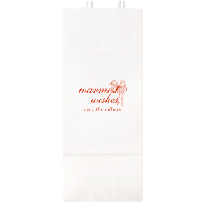 Zoom Show guides Loading product Warmest Wishes Bag Gift Bag Design ID: 3060599 Click on swatch to see options Choose Your Product Color Active Color Bag Colors Bag Colors Kraft Brown Black Metallic Silver White Lime Metallic Blue Sky Blue Ballet Pink Red Robin's Egg Blue Taupe Out Until: 2025-11-10 Choose Your Imprint Foil Color Active Color Shiny Foil Shiny Foil Metallic, lustrous finish. *Specialty patterned foil may vary on final print Shiny Champagne Shiny Sterling Silver Shiny 18 Kt Gold Shiny Kiwi / Lime Shiny Leaf Shiny Jade Shiny Royal Blue Shiny Amethyst Shiny Fuchsia Shiny Rose Quartz Shiny Rose Gold NEW Shiny Merlot Shiny Convertible Red Shiny Poppy Shiny Copper *Shiny Holographic Gold *Shiny Holographic Silver *Shiny Rainbow Matte Foil Matte Foil Flat finish. Matte NEW Chocolate Matte Black Matte Slate Gray Matte Dove Grey Matte White Matte Ivory Matte Mimosa Yellow Matte Sunflower Matte Key Lime Matte Leaf Matte Spruce Matte Teal/Peacock Matte Azure Matte Royal Blue Matte Navy Matte Amethyst Matte Pastel Pink Matte Ballet Pink Matte Fuchsia Matte Lipstick Red Matte Merlot Matte Tangerine Satin Foil Satin Foil Muted sheen, brushed finish. Satin Sterling Silver Satin 18 Kt. Gold Satin Copper Penny Satin Fuchsia Satin Lipstick Red Satin Leaf Satin Teal / Peacock Satin French Blue Satin Plum Choose Your Tissue Color Active Color Tissue Paper Tissue Paper Turquoise 10 sheets Lavender 10 sheets Pink 8 sheets Red 8 sheets None Brown 10 sheets Out Until: 2025-10-30 Black 10 sheets Out Until: 2025-10-29 Ivory 10 sheets Out Until: 2025-10-30 Royal Blue 10 sheets Out Until: 2025-11-27 Light Blue 10 sheets Out Until: 2025-10-30 Fuchsia 10 sheets Out Until: 2025-10-30 Personalize Your Text Line 1 Line 2 Line 3 Personalize further with different fonts, graphics, positioning, and sizes. (Optional) Customize More Choose Your Quantity Subtotal PRICE INCLUDES: Select a Proof Option: Print As Is I confirm that I have reviewed my design and I understand it will be produced as shown and no proof will be provided. Digital Proof + $15 I would like an expert FYP designer to look at my design, make minor corrections if necessary, and send me a black and white proof before the order is produced. Orders delivered as soon as 11.06.2025. Exclusions apply. Share Your Design About This Design A gift presented in the Warmest Wishes Bag will certainly place good cheer into the hearts of loved ones. The elegant bag comes in a variety of colors with a multitude of inks to create custom text that clearly imparts your holiday message. Product Details Product Details Minimum order of 25 Measures 8.25" wide by 10.5" high by 4.375" deep Gusseted design Bulk discounts available Expedited shipping options available. Product Description Product Description Give gifts with a unique flair and create personalized gift bags through For Your Party. These paper gift bags are one of our larger bag options, making them perfect for larger party favors, birthday gifts, and even wedding welcome bags. Choose from our beautiful pre-made designs or start your own from scratch for the ultimate party favor. Our Gift Bags are made of high-quality paper with a matte finish and sturdy jute handles. Explore our other favor bags. Product Options Gift Bag Classic Gift Bag Cookie Bag Gloss Goodie Bag Popcorn Bag Lunch Bag Wine Gift Bag Related Products Gift Bag Classic Gift Bag Cookie Bag Gloss Goodie Bag Popcorn Bag Lunch Bag Wine Gift Bag