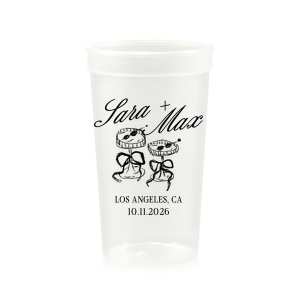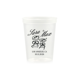 Zoom Show guides Loading product Wedding Glass & Bow Cup 12-oz. Frosted Cup Design ID: 3416913 Click on swatch to see options Choose Your Screen Print Active Color Metallic Cup Ink Metallic Cup Ink Silver Ink Gold Ink Copper Ink Matte Cup Ink Matte Cup Ink Matte Chocolate Ink Matte Black Ink Matte Slate Gray Ink Matte White Ink Matte Sunflower Ink Matte Moss Green Ink Matte Sage Ink Matte Leaf Ink Matte Spruce Matte Teal/Peacock Ink Matte Sky Blue Ink Matte French Blue Ink Matte Royal Blue Ink Matte Navy Ink Matte Cobalt Ink Matte Lavender Ink Matte Ballet Pink Ink Matte Fuchsia Ink Matte Lipstick Red Ink Matte Merlot Ink Matte Tangerine Ink Personalize Your Text Line 1 Line 2 Line 3 Line 4 Personalize further with different fonts, graphics, positioning, and sizes. (Optional) Customize More Choose Your Quantity Subtotal PRICE INCLUDES: Select a Proof Option: Print As Is I confirm that I have reviewed my design and I understand it will be produced as shown and no proof will be provided. Digital Proof + $15 I would like an expert FYP designer to look at my design, make minor corrections if necessary, and send me a black and white proof before the order is produced. Orders delivered as soon as 12.19.2025. Exclusions apply. Share Your Design About This Design The Wedding Glass & Bow Cup is the must have trendy design for your one of a kind lifetime event. Featuring hand-drawn bows tied around champagne glasses alongside customizable text in the screen printed ink color of your choice to best pair with your party's vibe. Product Details Product Details Minimum order of 50 Measures 4.25" tall and 3.25" wide at the top Holds 11.10 oz flush fill volume Perfect for mixed drinks and signature cocktails BPA-free and recyclable Shatterproof and top-rack dishwasher safe Bulk discounts available Expedited shipping options available. Product Description Product Description Frost flex cups from For Your Party are a perfect accessory for any event, from weddings to birthdays. Their translucent plastic complements any drink or color scheme, and can have any art you can imagine. They’re also reusable, so your guests can have a keepsake from your special day. Like our 10 oz. frost flex cups, our 12 oz. frost flex cups are made in the USA, BPA free, and can be hand-washed again and again to remember your event. Our 12 oz. size has the same shape as our 10 oz. size, and is perfect for when you want just a little more space. It has a flush fill volume of 11.1 oz. Product Options 12-oz. Frosted Cup 14-oz.Frosted Cup 16-oz. Frosted Cup 20-oz. Frosted Cup 24-oz. Frosted Cup 12-oz. Stadium Cup 16-oz.Stadium Cup 22-oz. Stadium Cup 32-oz. Stadium Cup 12-oz. Styrofoam Cup 16-oz. Styrofoam Cup 20-oz. Styrofoam Cup 24-oz. Styrofoam Cup 32-oz. Styrofoam Cup 10-oz. Hard Plastic Cup 12-oz. Hard Plastic Cup 14-oz. Hard Plastic Cup 16-oz. Hard Plastic Cup Related Products 12-oz. Frosted Cup 14-oz.Frosted Cup 16-oz. Frosted Cup 20-oz. Frosted Cup 24-oz. Frosted Cup 12-oz. Stadium Cup 16-oz.Stadium Cup 22-oz. Stadium Cup 32-oz. Stadium Cup 12-oz. Styrofoam Cup 16-oz. Styrofoam Cup 20-oz. Styrofoam Cup 24-oz. Styrofoam Cup 32-oz. Styrofoam Cup 10-oz. Hard Plastic Cup 12-oz. Hard Plastic Cup 14-oz. Hard Plastic Cup 16-oz. Hard Plastic Cup