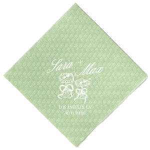 Zoom Show guides Loading product Wedding Glass & Bow Napkin Diamond Linen Like Cocktail Napkin Design ID: 3415293 Click on swatch to see options Choose Your Napkin Color Active Color Linen Like* - Premium Product Linen Like* - Premium Product Absorbent. Dyed tissue. Airlaid. Premium pricing applies. Pebble Kraft Ash Grey Black Charcoal Stone Gray Fog White Cream Buttercream Lemon Moss Green Hunter Green Pastel Green Lime Eucalyptus Dark Turquoise Bright Sky Powder Blue Navy Lavender Magenta Pastel Pink Pink Terracotta Peach Mango Metallic Silver Brown Out Until: 2025-12-26 Ivory Out Until: 2026-01-02 Olive Green Out Until: 2025-12-24 Berry Out Until: 2025-12-28 Merlot Out Until: 2025-12-25 Lipstick Red Out Until: 2025-12-19 Metallic Gold Out Until: 2025-12-24 Metallic Copper Out Until: 2026-01-08 Crosshatch* - Premium Product Crosshatch* - Premium Product Absorbent. Printed tissue. Airlaid. Premium pricing applies. Crosshatch Black Crosshatch Gray Crosshatch Green Crosshatch Turquoise Crosshatch Violet Crosshatch Lipstick Red Crosshatch Stone Out Until: 2025-12-15 Crosshatch Key Lime Out Until: 2026-01-01 Crosshatch Navy Out Until: 2026-01-01 Crosshatch Fuchsia Out Until: 2025-12-27 Herringbone* - Premium Product Herringbone* - Premium Product Absorbent. Printed Herringbone pattern. Airlaid. Premium pricing applies. Herringbone Vanilla Mocha Herringbone Gray Onyx Choose Your Imprint Foil Color Active Color Shiny Foil Shiny Foil Metallic, lustrous finish. *Specialty patterned foil may vary on final print Shiny Champagne Shiny Sterling Silver Shiny 18 Kt Gold Shiny Kiwi / Lime Shiny Leaf Shiny Jade Shiny Royal Blue Shiny Amethyst Shiny Fuchsia Shiny Rose Quartz Shiny Rose Gold NEW Shiny Merlot Shiny Convertible Red Shiny Poppy Shiny Copper *Shiny Holographic Gold *Shiny Holographic Silver *Shiny Rainbow Matte Foil Matte Foil Flat finish. Matte NEW Chocolate Matte Black Matte Slate Gray Matte Dove Grey Matte White Matte Ivory Matte Mimosa Yellow Matte Sunflower Matte Key Lime Matte Leaf Matte Spruce Matte Teal/Peacock Matte Azure Matte Royal Blue Matte Navy Matte Amethyst Matte Pastel Pink Matte Ballet Pink Matte Fuchsia Matte Lipstick Red Matte Merlot Matte Tangerine Satin Foil Satin Foil Muted sheen, brushed finish. Satin Sterling Silver Satin 18 Kt. Gold Satin Copper Penny Satin Fuchsia Satin Lipstick Red Satin Leaf Satin Teal / Peacock Satin French Blue Satin Plum Personalize Your Text Line 1 Line 2 Line 3 Line 4 Personalize further with different fonts, graphics, positioning, and sizes. (Optional) Customize More Choose Your Quantity Subtotal PRICE INCLUDES: Select a Proof Option: Print As Is I confirm that I have reviewed my design and I understand it will be produced as shown and no proof will be provided. Digital Proof + $15 I would like an expert FYP designer to look at my design, make minor corrections if necessary, and send me a black and white proof before the order is produced. Orders delivered as soon as 12.19.2025. Exclusions apply. Share Your Design About This Design The Wedding Glass & Bow Napkin is the must have trendy design for your one of a kind lifetime event. Featuring hand-drawn bows tied around champagne glasses alongside customizable text in your choice of styles and colors to best personalize to your tastes. Product Details Product Details Deluxe air laid paper Measures approximately 5" x 5" Signature foil stamp included Bulk discounts available Expedited shipping options available. Product Description Product Description Introducing our custom Linen-Like Cocktail Napkins, the epitome of elegance and refinement for your sophisticated gatherings. Whether you're hosting a formal wedding reception or a chic cocktail soirée, these linen cocktail napkins effortlessly complement any table setting. Their soft and gentle touch will leave a lasting impression on guests, showcasing your commitment to providing a truly upscale experience. Meticulously crafted, these napkins exude the luxurious look and feel of fine linen while offering the convenience of being disposable. Crafted from premium-quality materials, they are highly absorbent and the same dimensions as our classic cocktail napkins. With the perfect blend of functionality and elegance, you can elevate any upscale bar or lounge. Product Options Diamond Linen Like Cocktail Napkin Diamond Cocktail Napkin Diamond Cocktail Napkin Diamond Cocktail Napkin Paper Guest Towel Diamond Dinner Napkin Diamond Top Scalloped Luncheon Napkin Diamond Petite Napkin Related Products Diamond Linen Like Cocktail Napkin Diamond Cocktail Napkin Diamond Cocktail Napkin Diamond Cocktail Napkin Paper Guest Towel Diamond Dinner Napkin Diamond Top Scalloped Luncheon Napkin Diamond Petite Napkin