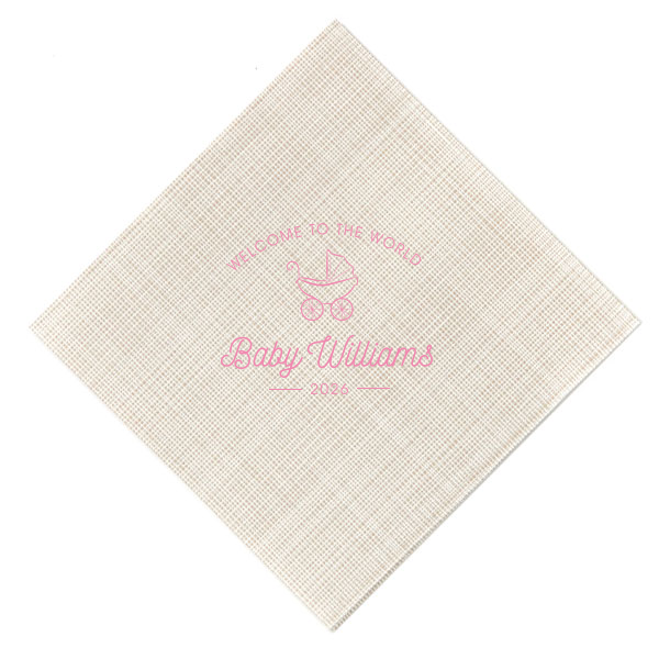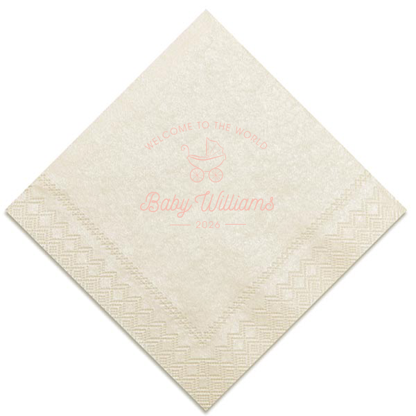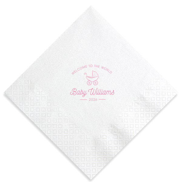 Zoom Show guides Loading product Welcome to the World Baby Shower Napkin Diamond Cocktail Napkin Design ID: 6732 Click on swatch to see options Choose Your Napkin Color Active Color 3 ply 3 ply Top quality 3 ply. Dyed tissue. Sand Black Slate Platinum Platinum Pin Dot Dove Gray Dove Gray Borderless White White Borderless White Pin Dot White Scallop Ivory Ivory Borderless Mimosa Lemon Pin Dot Kiwi Kiwi Pin Dot Leaf Pin Dot Spruce Pin Dot Olive Pin Dot Light Navy Dark Turquoise Pin Dot Turquoise Powder Blue Pin Dot Lavender Lavender Pin Dot Purple Merlot Pin Dot Candy Pink Antique Pink Pin Dot Ballet Pink Ballet Pink Borderless Convertible Red Light Coral Merlot Out Until: 2025-12-22 Fuchsia Out Until: 2026-01-05 Linen Like* - Premium Product Linen Like* - Premium Product Absorbent. Dyed tissue. Airlaid. Premium pricing applies. Pebble Kraft Ash Grey Black Charcoal Stone Gray Metallic Silver Fog White Cream Buttercream Lemon Moss Green Hunter Green Pastel Green Lime Eucalyptus Dark Turquoise Bright Sky Powder Blue Navy Lavender Magenta Pastel Pink Pink Terracotta Peach Mango Metallic Copper Out Until: 2026-01-08 Brown Out Until: 2025-12-26 Ivory Out Until: 2026-01-02 Metallic Gold Out Until: 2025-12-24 Olive Green Out Until: 2025-12-24 Berry Out Until: 2025-12-28 Merlot Out Until: 2025-12-25 Lipstick Red Out Until: 2025-12-19 Crosshatch* - Premium Product Crosshatch* - Premium Product Absorbent. Printed tissue. Airlaid. Premium pricing applies. Crosshatch Black Crosshatch Gray Crosshatch Green Crosshatch Turquoise Crosshatch Violet Crosshatch Lipstick Red Crosshatch Stone Out Until: 2025-12-15 Crosshatch Key Lime Out Until: 2026-01-01 Crosshatch Navy Out Until: 2026-01-01 Crosshatch Fuchsia Out Until: 2025-12-27 Woven* - Premium Product Woven* - Premium Product Basketweave texture. Single-sided color. Premium pricing applies. Woven Sand Woven Copper Woven Black Woven Slate Woven Silver Woven Stone Woven Vanilla Woven White Woven Gold Woven Sage Woven Spruce Woven Powder Blue Woven Navy Woven Mauve Woven Convertible Red Woven Tumeric Patterned* - Premium Product Patterned* - Premium Product Exclusive FYP patterns. Single-sided color. Pindot embossed edge. Product pricing applies. Oak Wood Walnut Wood Ebony Wood Ash Wood Birch Wood Marble Sand Marble Gray Marble Navy Marble Taupe Marble Blush Ombre Black Ombre Navy Ombre Robin’s Egg Blue Ombre Rose petal Ombre Coral Watercolor Sea Glass Watercolor Ocean Watercolor Nightfall Watercolor Sangria Watercolor Hibiscus Watercolor Rose Watercolor Sunrise Leaf Sand Leaf Fern Leaf Rain Leaf Rose Tie Dye Sunflower Tie Dye Leaf Tie Dye Turquoise Tie Dye Fuchsia Shimmer* - Premium Product Shimmer* - Premium Product Elegant European Stardream with iridescent finish. Single-sided color. Pindot embossed edge. Premium pricing applies. Champagne Soft Black Galvanized Silver Crystal White Ivory Pearl Gold Sage Navy Amethyst Herringbone* - Premium Product Herringbone* - Premium Product Absorbent. Printed Herringbone pattern. Airlaid. Premium pricing applies. Herringbone Vanilla Mocha Herringbone Gray Onyx Choose Your Imprint Foil Color Active Color Shiny Foil Shiny Foil Metallic, lustrous finish. *Specialty patterned foil may vary on final print Shiny Champagne Shiny Sterling Silver Shiny 18 Kt Gold Shiny Kiwi / Lime Shiny Leaf Shiny Jade Shiny Royal Blue Shiny Amethyst Shiny Fuchsia Shiny Rose Quartz Shiny Rose Gold NEW Shiny Merlot Shiny Convertible Red Shiny Poppy Shiny Copper *Shiny Holographic Gold *Shiny Holographic Silver *Shiny Rainbow Matte Foil Matte Foil Flat finish. Matte NEW Chocolate Matte Black Matte Slate Gray Matte Dove Grey Matte White Matte Ivory Matte Mimosa Yellow Matte Sunflower Matte Key Lime Matte Leaf Matte Spruce Matte Teal/Peacock Matte Azure Matte Royal Blue Matte Navy Matte Amethyst Matte Pastel Pink Matte Ballet Pink Matte Fuchsia Matte Lipstick Red Matte Merlot Matte Tangerine Satin Foil Satin Foil Muted sheen, brushed finish. Satin Sterling Silver Satin 18 Kt. Gold Satin Copper Penny Satin Fuchsia Satin Lipstick Red Satin Leaf Satin Teal / Peacock Satin French Blue Satin Plum Personalize Your Text Line 1 Line 2 Line 4 Personalize further with different fonts, graphics, positioning, and sizes. (Optional) Customize More Choose Your Quantity Subtotal PRICE INCLUDES: Select a Proof Option: Print As Is I confirm that I have reviewed my design and I understand it will be produced as shown and no proof will be provided. Digital Proof + $15 I would like an expert FYP designer to look at my design, make minor corrections if necessary, and send me a black and white proof before the order is produced. Orders delivered as soon as 12.16.2025. Exclusions apply. Share Your Design About This Design Embrace vintage charm with the Welcome to the World Baby Shower Napkin, featuring a hand-drawn baby carriage and classic script. This whimsical design offers a warm, nostalgic welcome for the newest addition, perfect for any baby shower. Product Details Product Details Classic 3-ply tissue, 4.75” or 5” square Colors vary Signature foil stamp included Bulk discounts available Expedited shipping options available. Product Description Product Description Classic Cocktail Napkins are the perfect companion for any event. Add a touch of refinement to your cocktail parties, weddings, or birthday celebrations. Whether you're sipping a Martini, Old Fashioned, or a signature cocktail, these beverage napkins are the perfect accompaniment to elevate your drink service to new heights.Traditionally designed with a classic pleated edge, highly absorbent, durable, crafted from high-quality, premium-grade paper, our Classic Cocktail Napkins are an excellent, timeless choice. They are soft to the touch, keeping your guests' hands dry and your furniture protected. Once used, simply discard them, making cleanup a breeze. Explore our Cocktail Napkins Collection to find the perfect option for your event. Due to the complexities of manufacturing, the size of the embos