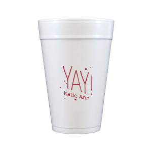 Zoom Show guides Loading product YAY! Party Cup 12-oz. Styrofoam Cup Design ID: 174349 Click on swatch to see options Choose Your Screen Print Active Color Matte Cup Ink Matte Cup Ink Matte Black Ink Matte Slate Gray Ink Matte Moss Green Ink Matte Leaf Ink Matte Spruce Matte Sky Blue Ink Matte Royal Blue Ink Matte Navy Ink Matte Cobalt Ink Matte Ballet Pink Ink Matte Fuchsia Ink Matte Lipstick Red Ink Matte Merlot Ink Metallic Cup Ink Metallic Cup Ink Silver Ink Gold Ink Copper Ink Personalize Your Text Line 1 Personalize further with different fonts, graphics, positioning, and sizes. (Optional) Customize More Choose Your Quantity Subtotal PRICE INCLUDES: Select a Proof Option: Print As Is I confirm that I have reviewed my design and I understand it will be produced as shown and no proof will be provided. Digital Proof + $15 I would like an expert FYP designer to look at my design, make minor corrections if necessary, and send me a black and white proof before the order is produced. Orders delivered as soon as 12.04.2025. Exclusions apply. Share Your Design About This Design Make this party unforgettable with the customizable YAY! Party Cup! Product Details Product Details Minimum order of 50 Measures 4.5" tall and 3.5" wide at the top Ideal for coffee and tea Recyclable Bulk discounts available Expedited shipping options available. Product Description Product Description Want the customization of our custom cups, but easier clean-up? Our styrofoam cups are the answer. Custom printed cups are great for your bachelorette party, or any time where you’re on the go and can’t stop to clean! Like their frost flex siblings, these are a compact 12 oz. package that can be customized with your art. Recyclable styrofoam is great for convenience and versatility—these cups can serve up hot or cold drinks, and no washing needed. Try them for coffee or mixed drinks at your next party! Product Options 12-oz. Styrofoam Cup 16-oz. Styrofoam Cup 20-oz. Styrofoam Cup 32-oz. Styrofoam Cup 24-oz. Styrofoam Cup Related Products 12-oz. Styrofoam Cup 16-oz. Styrofoam Cup 20-oz. Styrofoam Cup 32-oz. Styrofoam Cup 24-oz. Styrofoam Cup
