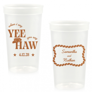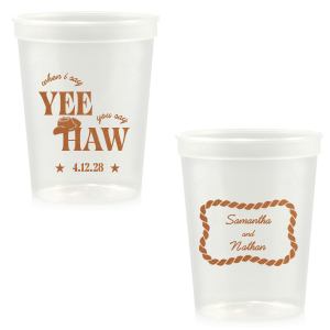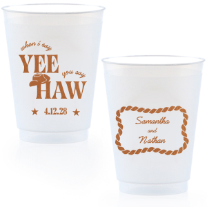 Zoom Show guides Loading product Yee Haw Cup 12-oz. Frosted Cup Design ID: 3320707 Click on swatch to see options Choose Your Screen Print Active Color Metallic Cup Ink Metallic Cup Ink Silver Ink Gold Ink Copper Ink Matte Cup Ink Matte Cup Ink Matte Chocolate Ink Matte Black Ink Matte Slate Gray Ink Matte White Ink Matte Sunflower Ink Matte Moss Green Ink Matte Sage Ink Matte Leaf Ink Matte Spruce Matte Teal/Peacock Ink Matte Sky Blue Ink Matte French Blue Ink Matte Royal Blue Ink Matte Navy Ink Matte Cobalt Ink Matte Lavender Ink Matte Ballet Pink Ink Matte Fuchsia Ink Matte Lipstick Red Ink Matte Merlot Ink Matte Tangerine Ink Personalize Your Text Line 1 Line 2 Line 3 Line 4 Personalize further with different fonts, graphics, positioning, and sizes. (Optional) Customize More Choose Your Quantity Subtotal PRICE INCLUDES: Select a Proof Option: Print As Is I confirm that I have reviewed my design and I understand it will be produced as shown and no proof will be provided. Digital Proof + $15 I would like an expert FYP designer to look at my design, make minor corrections if necessary, and send me a black and white proof before the order is produced. Orders delivered as soon as 11.06.2025. Exclusions apply. Share Your Design About This Design Have your next hoedown covered with the Yee Haw Cup from For Your Party! Customize the design with your choice of ink colors and cup styles to best match your event's vibes. Perfect for summertime cookouts, engagements of bachelor & bachelorette parties Product Details Product Details Minimum order of 50 Measures 4.25" tall and 3.25" wide at the top Holds 11.10 oz flush fill volume Perfect for mixed drinks and signature cocktails BPA-free and recyclable Shatterproof and top-rack dishwasher safe Bulk discounts available Expedited shipping options available. Product Description Product Description Frost flex cups from For Your Party are a perfect accessory for any event, from weddings to birthdays. Their translucent plastic complements any drink or color scheme, and can have any art you can imagine. They’re also reusable, so your guests can have a keepsake from your special day. Like our 10 oz. frost flex cups, our 12 oz. frost flex cups are made in the USA, BPA free, and can be hand-washed again and again to remember your event. Our 12 oz. size has the same shape as our 10 oz. size, and is perfect for when you want just a little more space. It has a flush fill volume of 11.1 oz. Product Options 12-oz. Frosted Cup 14-oz.Frosted Cup 16-oz. Frosted Cup 20-oz. Frosted Cup 12-oz. Stadium Cup 16-oz.Stadium Cup 22-oz. Stadium Cup 32-oz. Stadium Cup 16-oz. Color Changing Cup 12-oz. Styrofoam Cup 16-oz. Styrofoam Cup 20-oz. Styrofoam Cup 24-oz. Styrofoam Cup 32-oz. Styrofoam Cup 10-oz. Hard Plastic Cup 12-oz. Hard Plastic Cup 14-oz. Hard Plastic Cup 16-oz. Hard Plastic Cup 10-oz. Soft Plastic Cup 12-oz. Soft Plastic Cup 16-oz. Soft Plastic Cup 20-oz. Soft Plastic Cup 32-oz. Soft Plastic Cup 16-oz. Plastic Party Cup Related Products 12-oz. Frosted Cup 14-oz.Frosted Cup 16-oz. Frosted Cup 20-oz. Frosted Cup 12-oz. Stadium Cup 16-oz.Stadium Cup 22-oz. Stadium Cup 32-oz. Stadium Cup 16-oz. Color Changing Cup 12-oz. Styrofoam Cup 16-oz. Styrofoam Cup 20-oz. Styrofoam Cup 24-oz. Styrofoam Cup 32-oz. Styrofoam Cup 10-oz. Hard Plastic Cup 12-oz. Hard Plastic Cup 14-oz. Hard Plastic Cup 16-oz. Hard Plastic Cup 10-oz. Soft Plastic Cup 12-oz. Soft Plastic Cup 16-oz. Soft Plastic Cup 20-oz. Soft Plastic Cup 32-oz. Soft Plastic Cup 16-oz. Plastic Party Cup